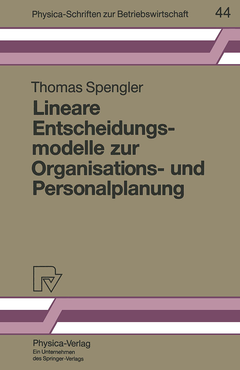Es werden sehr ausführlich zahlreiche lineare Entscheidungsmodelle zur Organisations- und Personalplanung für den deterministischen und den unscharfen Fall formuliert und analysiert. Zunächst wird von der Fiktion der Existenz eines durchschnittlich geeigneten ...