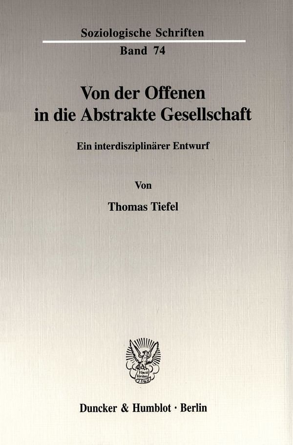 In seinem Werk »Die offene Gesellschaft und ihre Feinde« beschreibt Karl Popper nicht nur zwei, sondern drei Gesellschaftstypen: Die geschlossene, die offene und die abstrakte Gesellschaft. Da die Behandlung der letzteren bruchstückhaft blieb, unternimmt es Th...