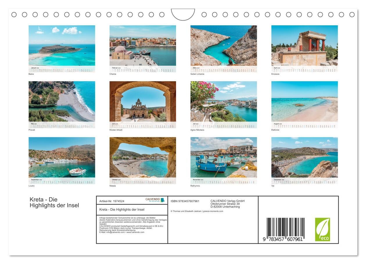 Dieser Griechenland Kalender nimmt euch mit auf die Insel Kreta. Lasst euch von der größten griechischen Inseln verzaubern und holt euch Griechenland nach Hause. Unsere hochwertigen Fotos verschönern die eigenen vier Wände, das Büro oder die WG-Küche. Darüber ...
