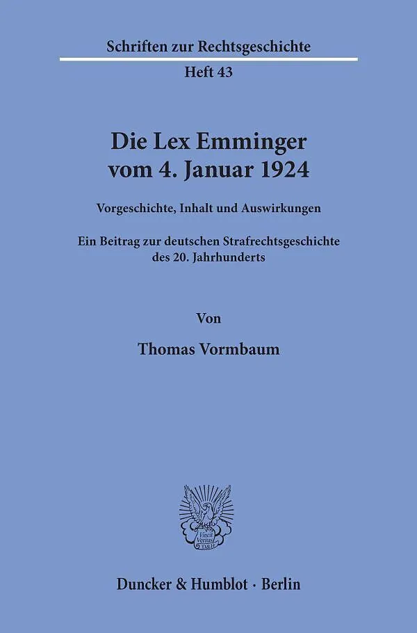 Autorentext Thomas Vormbaum, Jg. 1943, studierte Rechtswissenschaft, Geschichtswissenschaft und Politikwissenschaft an den Universitäten Münster und Würzburg. 1975 Promotion zum Dr. jur. (bei Rudolf Gmür); 1979 Promotion zum Dr. phil. (bei Heinz Dollinger); 19...