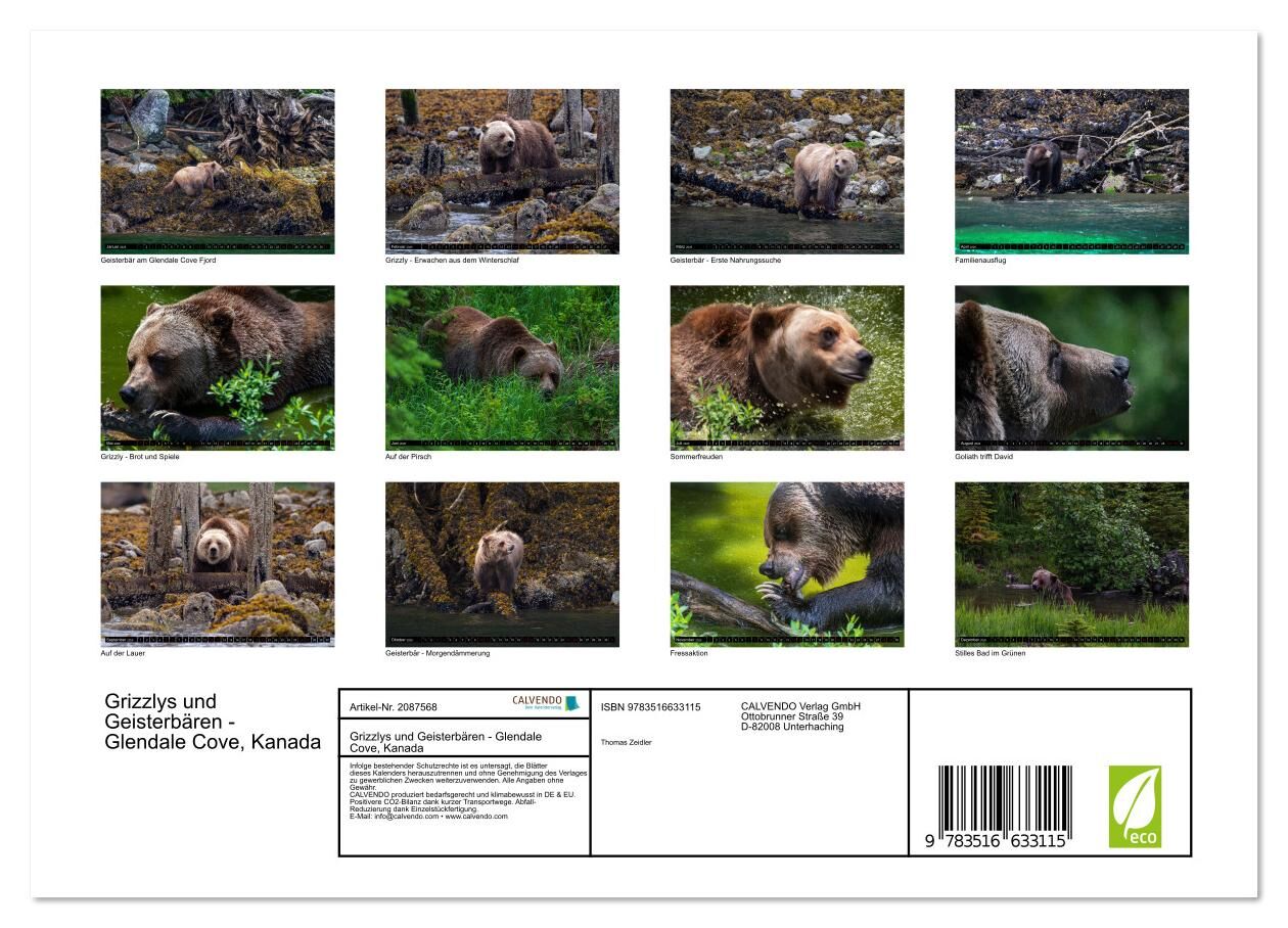 Tauchen Sie ein in die Wildnis British Columbiens mit dem Kalender Grizzlys und Geisterbären Glendale Cove, Kanada. Monat für Monat erleben Sie die majestätischen Grizzlybären im Great Bear Rainforest eine der besten Regionen weltweit zur Beobachtung dieser Ti...