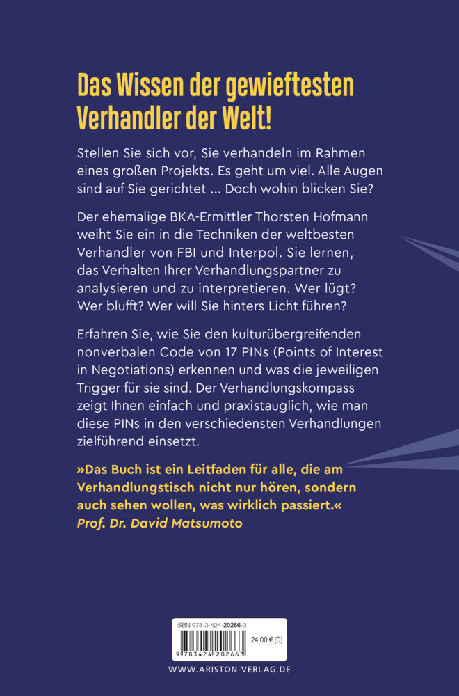 Das Wissen der gewieftesten Verhandler der Welt! Sie verhandeln im Rahmen eines großen Projekts. Es geht um viel. Alle Augen sind auf Sie gerichtet Doch wohin blicken Sie? Der ehemalige BKA-Ermittler Thorsten Hofmann weiht Sie ein in die Techniken der weltbest...