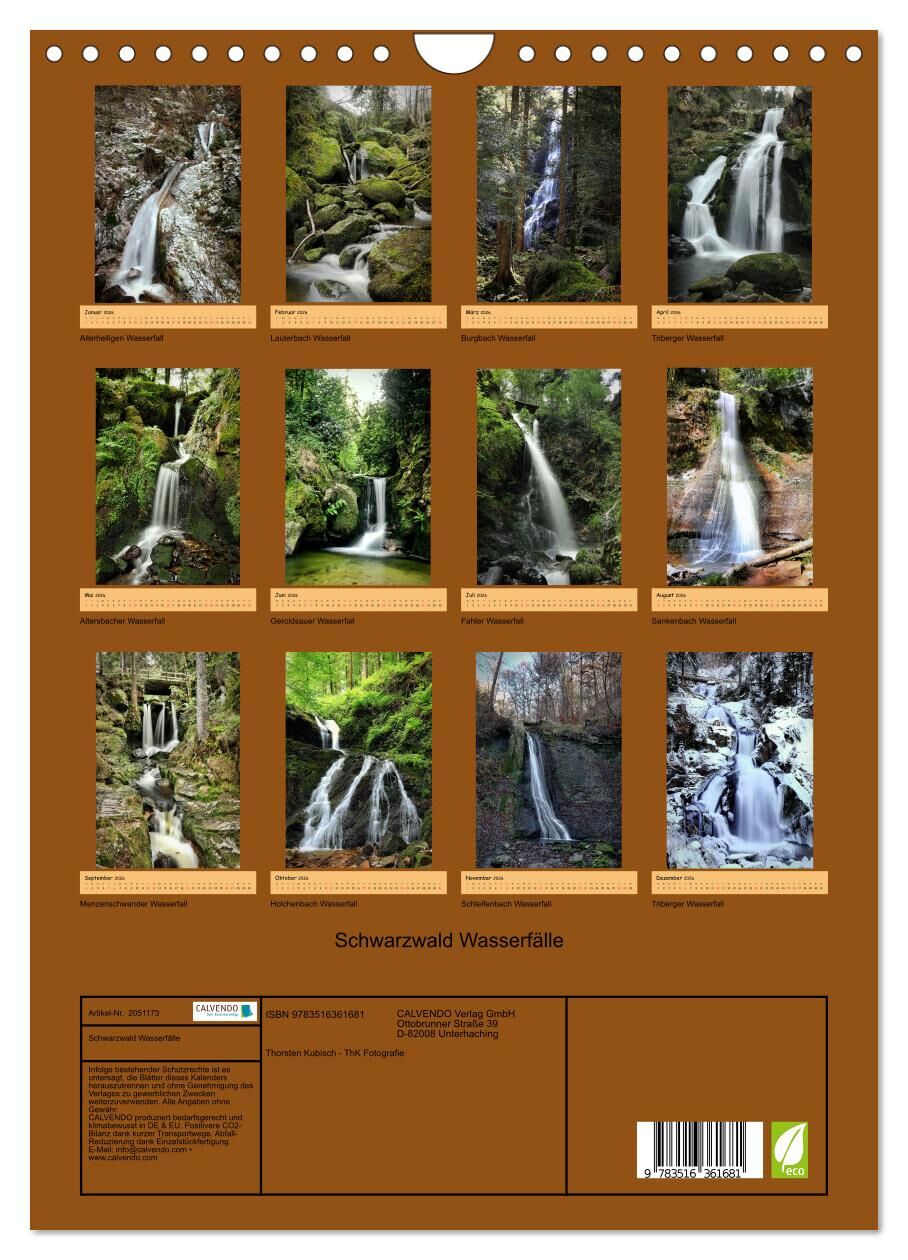 Schwarzwald Wasserfälle (Wandkalender 2026 DIN A4 hoch), CALVENDO Monatskalender