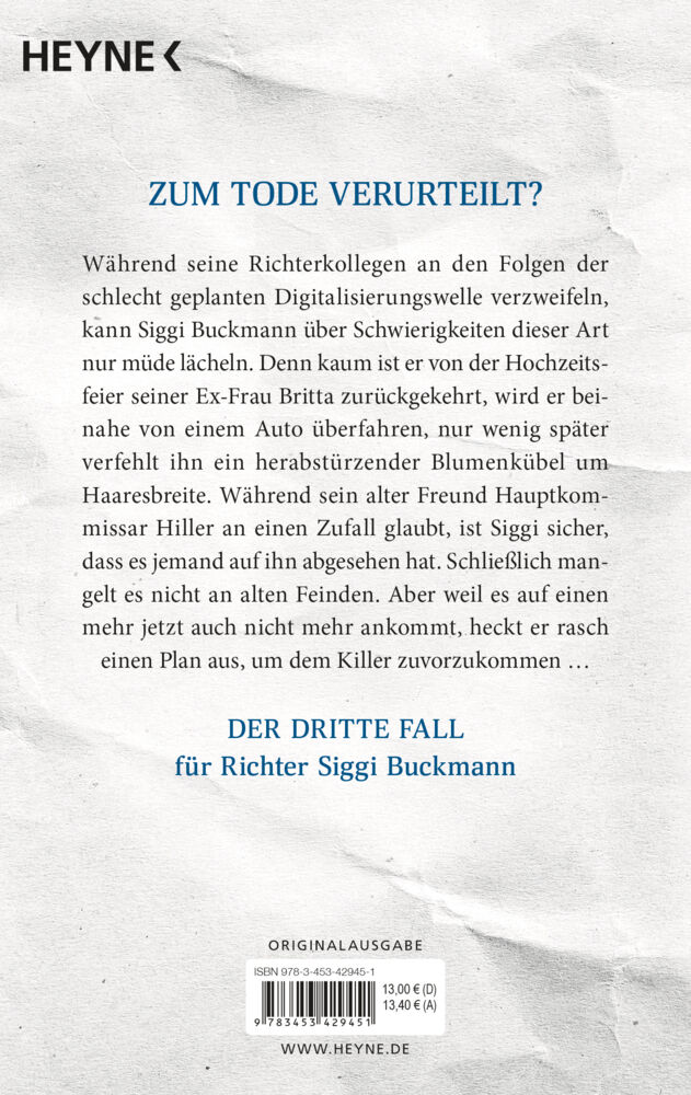 Aller guten Morde sind drei! Während seine Richterkollegen an den Folgen der schlecht geplanten Digitalisierungswelle verzweifeln, kann Siggi Buckmann über Schwierigkeiten dieser Art nur müde lächeln. Denn kaum ist er von der Hochzeitsfeier seiner Ex-Frau Brit...