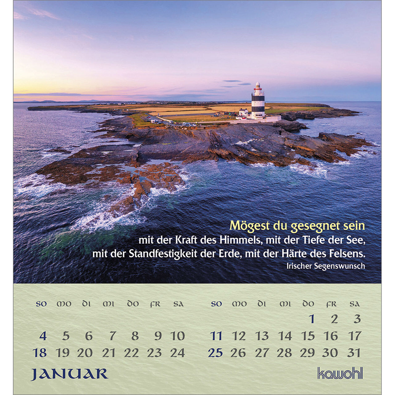 Irische Impressionen und Segenswünsche Aufstellkalender mit irischen Impressionen und Segenswünschen Lassen Sie sich faszinieren von der atemberaubenden wildromantischen Schönheit der "grünen Insel". Impressionen aus Irland mit irischen Segenswünschen und über...