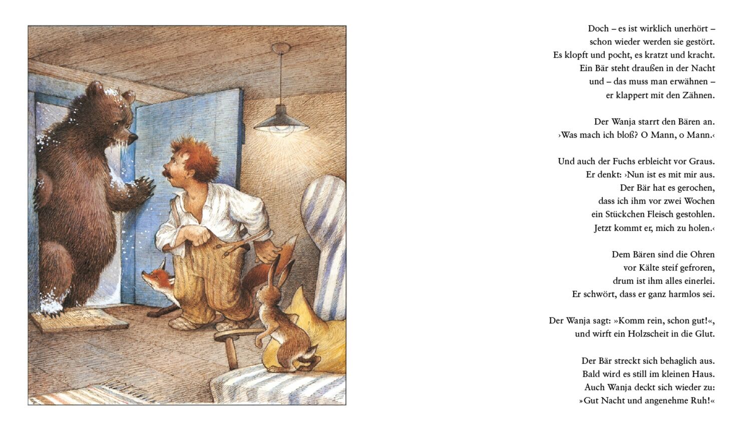"Es klopft bei Wanja in der Nacht" von Tilde Michels ist ein zeitloser Bilderbuch-Klassiker, der die Geschichte einer ungewöhnlichen und herzerwärmenden Begegnung in einer kalten Winternacht erzählt. In dieser Nacht suchen ein frierender Hase, ein hungriger F...
