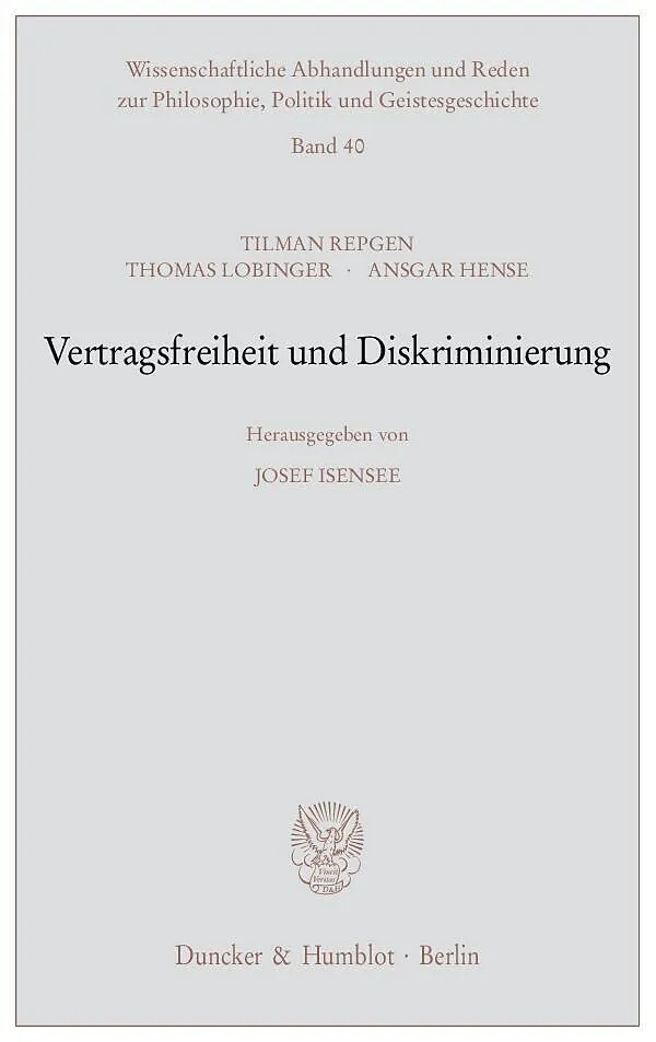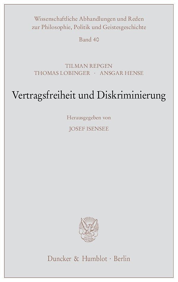 Vertragsfreiheit enthält auch Freiheit zur Diskriminierung. Sie entbindet legitime Willkür. Der Private entscheidet autonom, ob, mit wem und unter welchen Bedingungen er eine vertragliche Beziehung knüpft. Diese Freiheit kommt jedermann in gleichem rechtlichen...