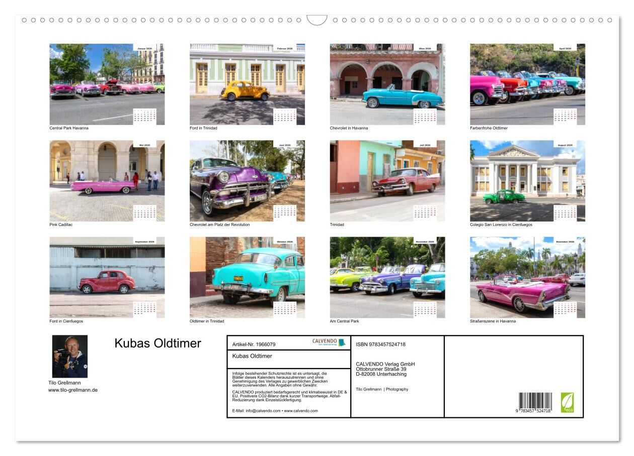 Traumautos auf Kuba lassen die Herzen höher schlagen. Amerikanische Klassiker, wunderschön und farbenfroh, sind das Lieblingsmotiv der Touristen auf Kuba. Noch begegnet man ihnen an jeder Straßenecke und der Fotograf Tilo Grellmann, konnte mit seiner Kamera ei...