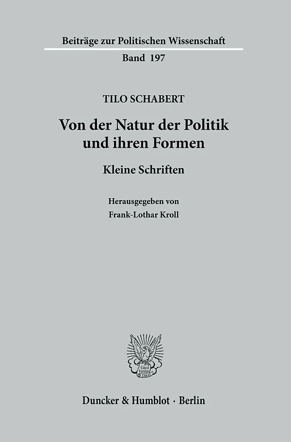 »On the Nature of Politics and Its Forms« During the past fifty years Tilo Schabert published numerous articles for academic journals and newspapers. Most are put together in this volume. They represent an exceptional range of scholarly studies: political theory, political philosophy and the history of ideas, comparative government, French and American Politics, French-German Relations, urban government and politics, essays on the political thought of Eric Voegelin, and the politics and personality of Franois Mitterrand und Helmut Kohl.