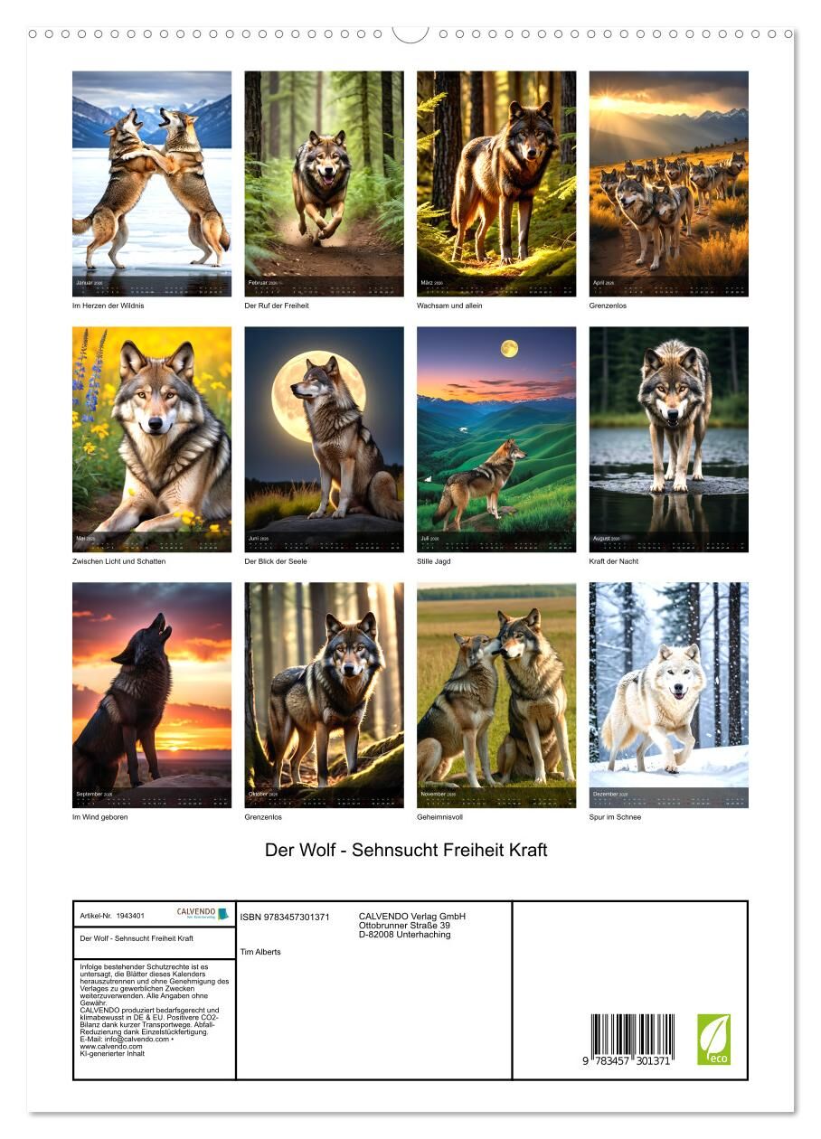 Wölfe faszinieren wild, stark und geheimnisvoll. Dieser ausdrucksstarke KI Kalender zeigt den Wolf in emotionalen Momenten: beim Heulen, Jagen, Ruhen oder im Lauf durch Licht und Schatten. Perfekt für Wolfsfreunde, Naturliebhaber, Tierliebhaber oder spirituell...