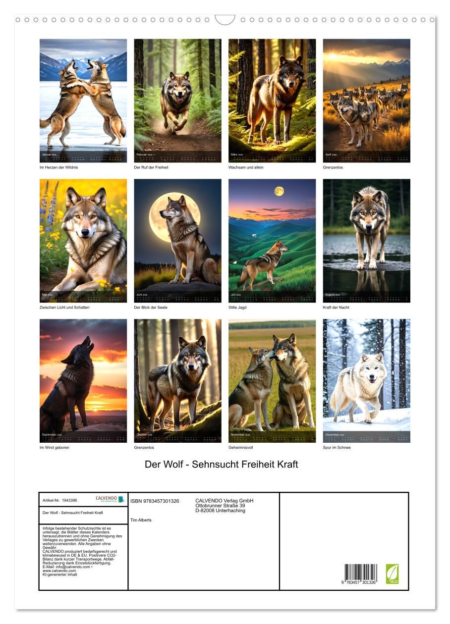 Der Wolf - Sehnsucht Freiheit Kraft (Wandkalender 2026 DIN A2 hoch), CALVENDO Monatskalender