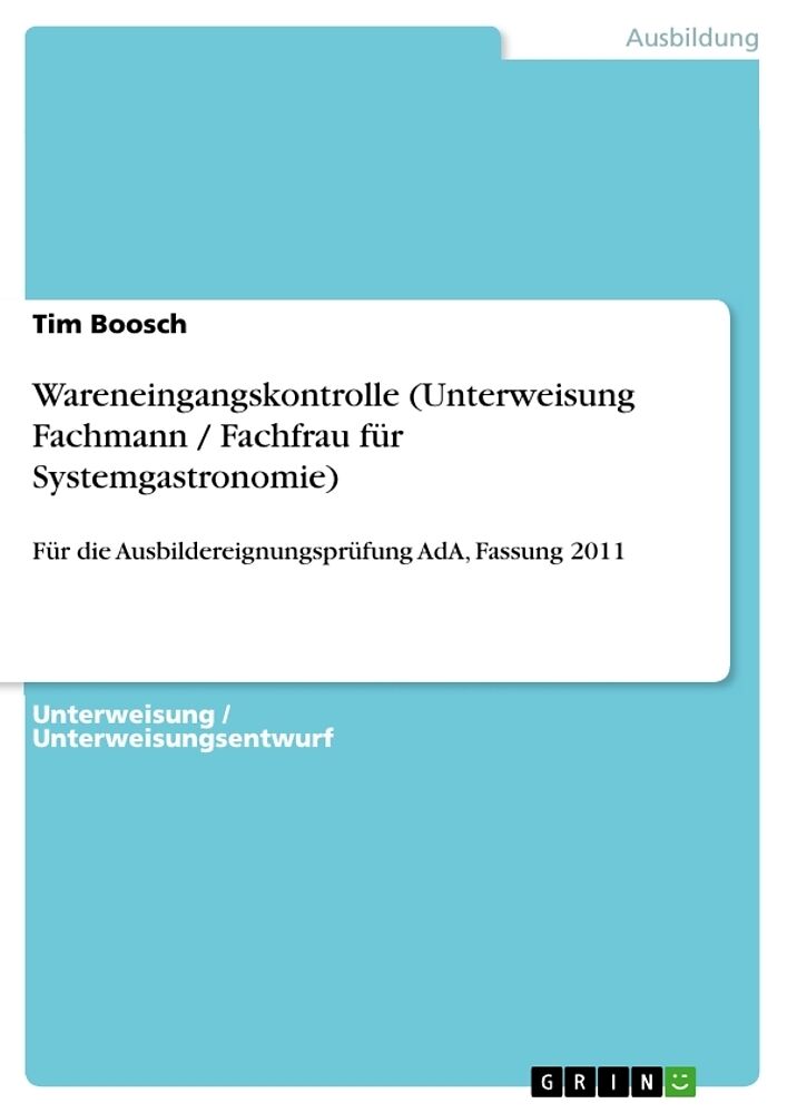 Unterweisung / Unterweisungsentwurf aus dem Jahr 2011 im Fachbereich AdA Gastronomie / Hotellerie / Tourismus, Note: 2, Industrie- und Handelskammer Bremerhaven (-), Veranstaltung: AdA / Ausbildung der Ausbilder, Sprache: Deutsch, Abstract: Auszubildende solle...
