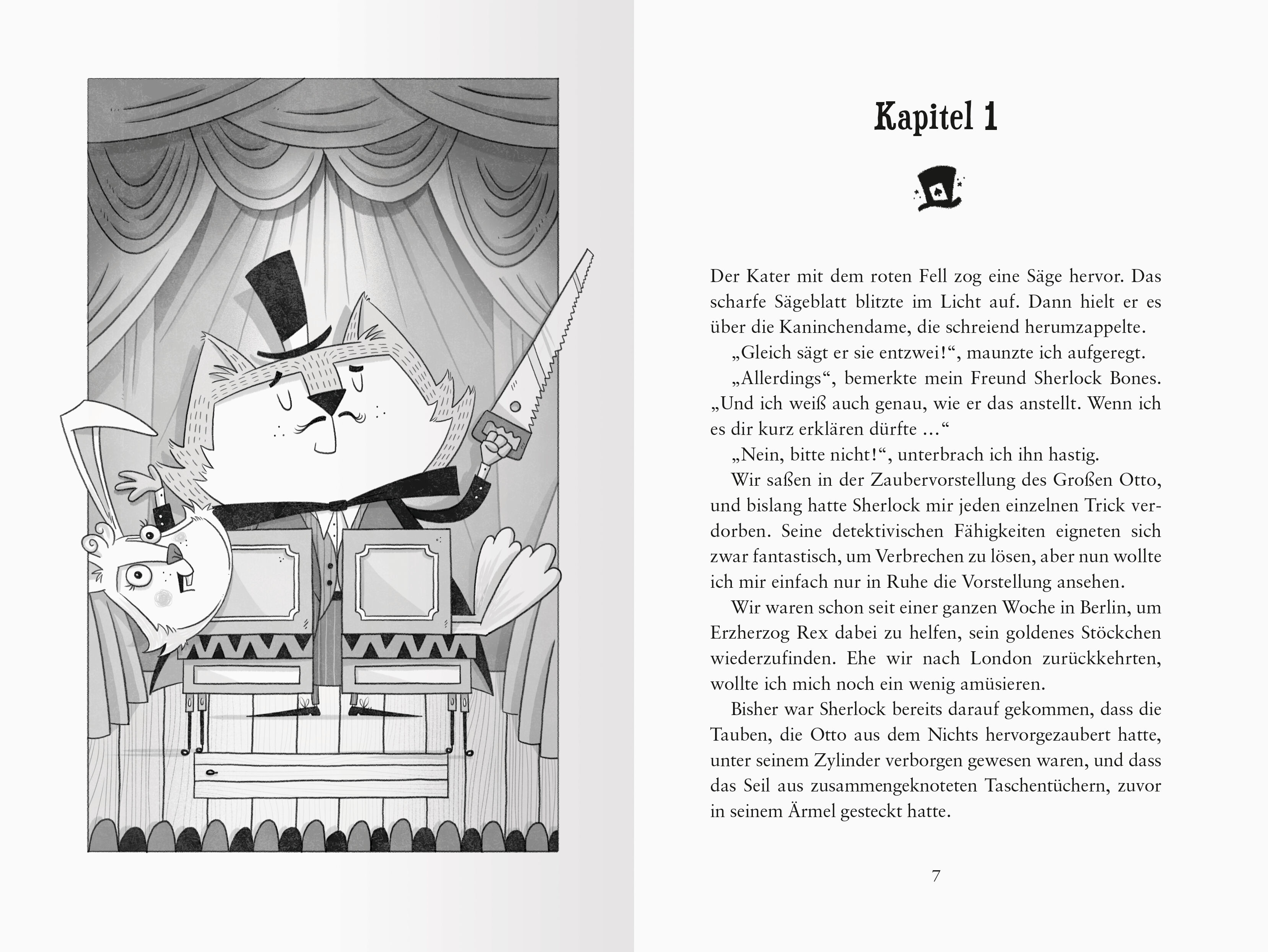 Hier wirst du zum Detektiv! Sherlock Bones und Dr. Catson besuchen die Show eines berühmten Zauberers. Zufällig treffen sie ihn später im Nachtzug nach Paris wieder. Doch auf einmal ist er spurlos verschwunden! Steckt ein Zaubertrick oder ein fieses Verbrechen...