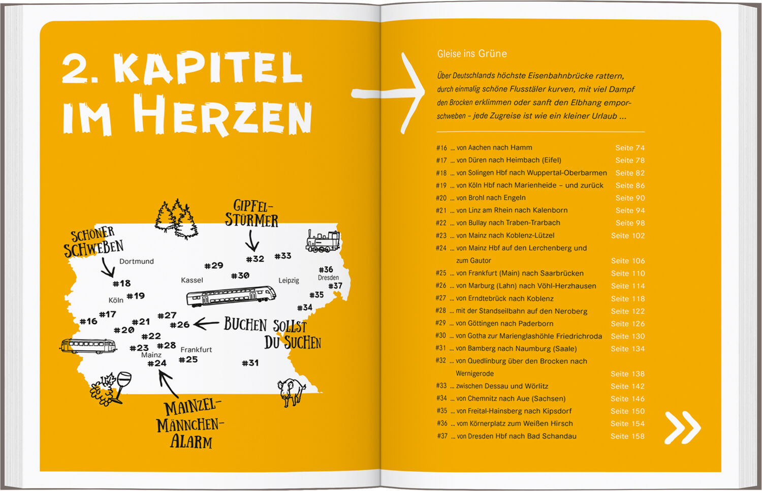 52 ESKAPADEN MIT DEM ZUG und zahlreiche Ideen für Zwischenstopps und Aktivitäten am Reiseziel machen Lust, die schönsten Ecken unseres Landes auf Schienen zu erkunden ob für wenige Stunden, einen Tag oder ein herrlich langes Wochenende, ob alleine, mit Freund...