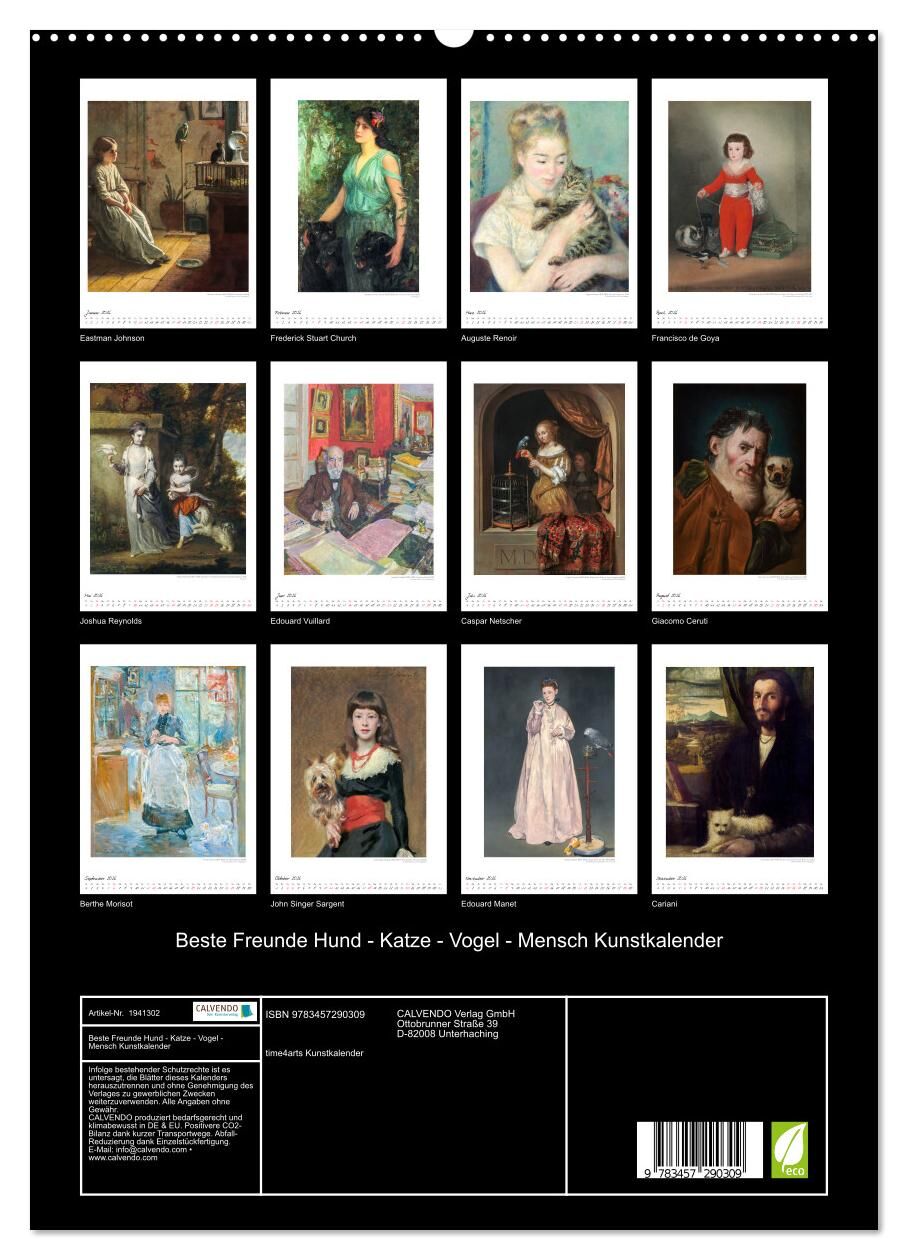 Beste Freunde Hund - Katze - Vogel - Mensch Kunstkalender (hochwertiger Premium Wandkalender 2026 DIN A2 hoch), Kunstdruck in Hochglanz