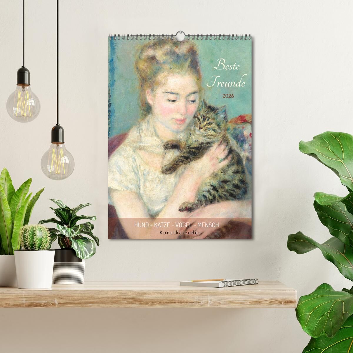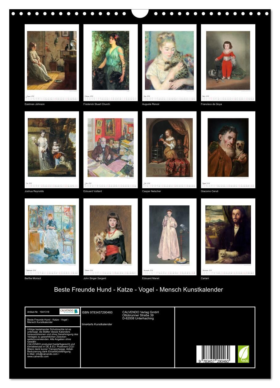 Beste Freunde Hund - Katze - Vogel - Mensch Kunstkalender (Wandkalender 2026 DIN A3 hoch), CALVENDO Monatskalender