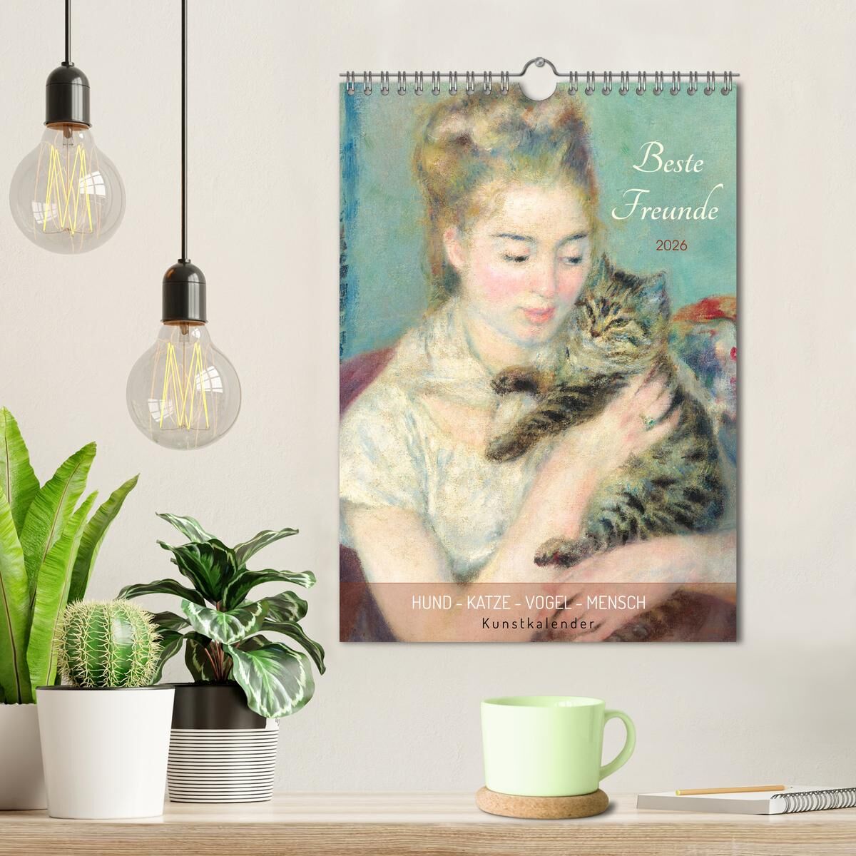 Beste Freunde Hund - Katze - Vogel - Mensch Kunstkalender (Wandkalender 2026 DIN A4 hoch), CALVENDO Monatskalender