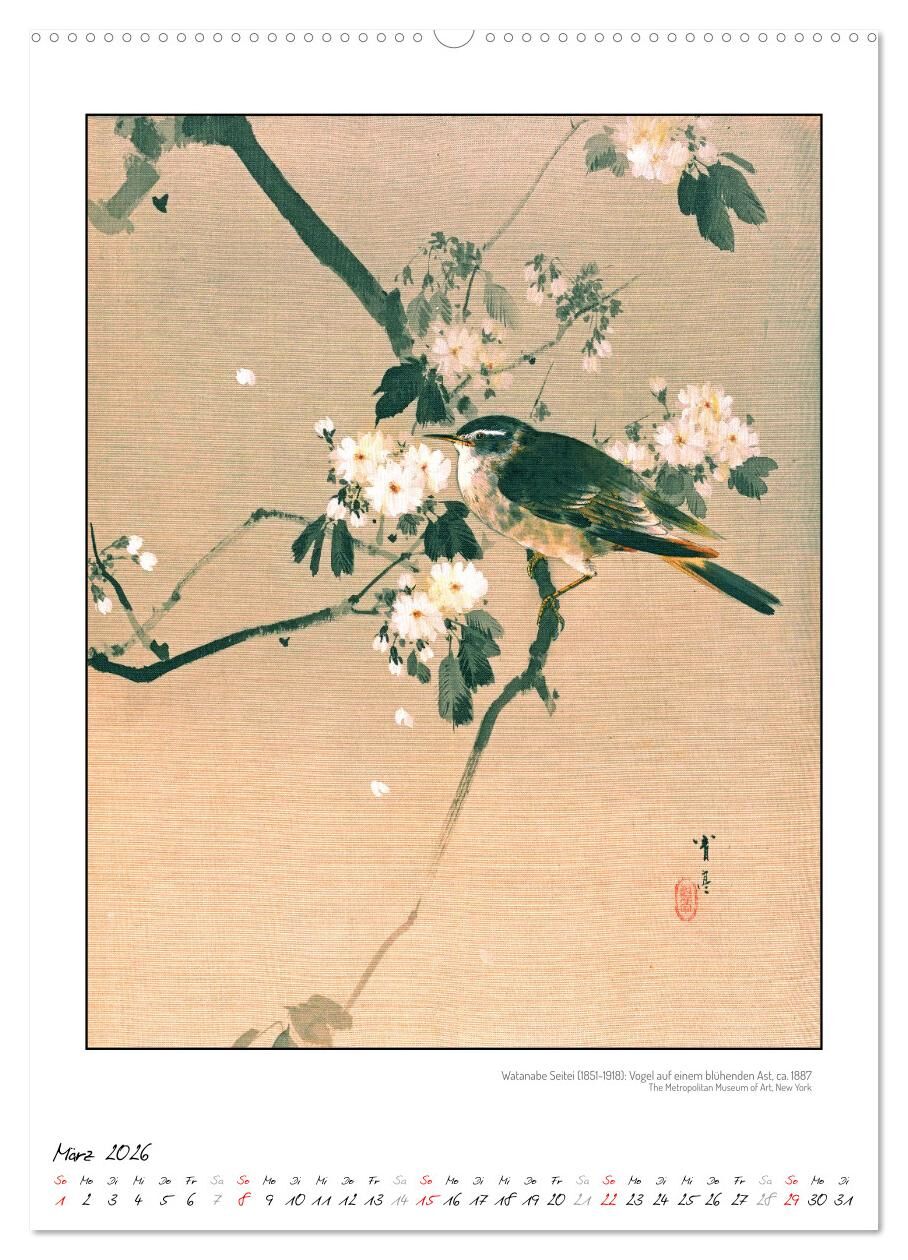 Watanabe Seitei (18511918): ein Meister japanischer Tuschemalerei. Seine Naturszenen spiegeln den Zauber des Moments mit einer Leichtigkeit, die bereits Europäer im ausgehenden 19. Jahrhundert beeindruckte. Der Kalender zeigt eine Auswahl von Seidenmalerei-Bil...