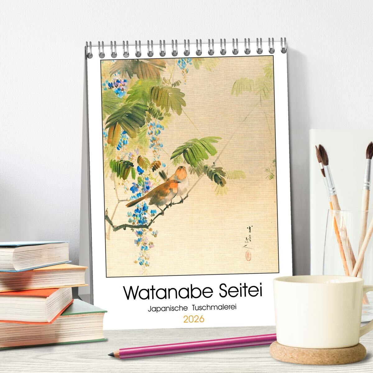 Watanabe Seitei (18511918): ein Meister japanischer Tuschemalerei. Seine Naturszenen spiegeln den Zauber des Moments mit einer Leichtigkeit, die bereits Europäer im ausgehenden 19. Jahrhundert beeindruckte. Der Kalender zeigt eine Auswahl von Seidenmalerei-Bil...