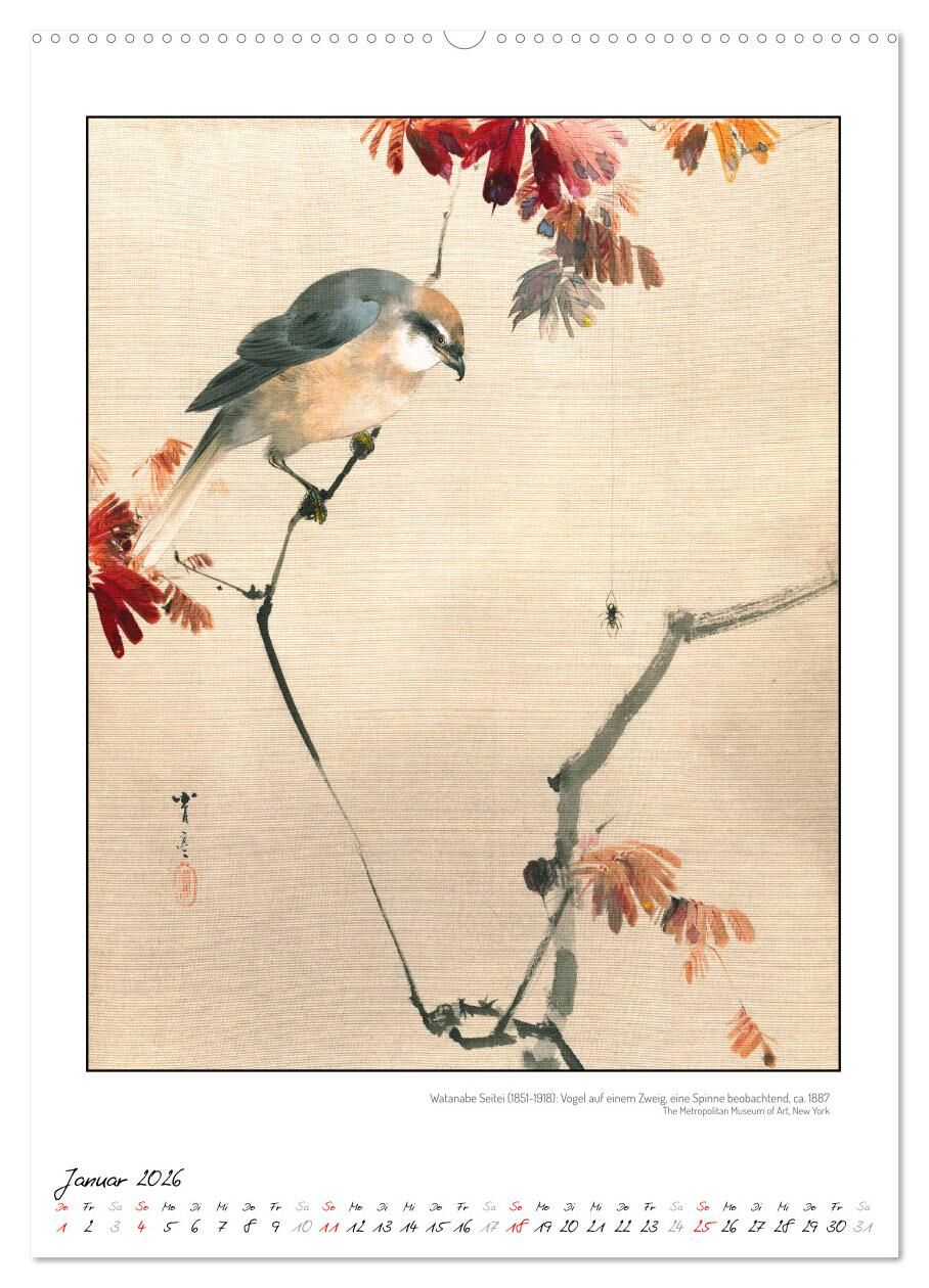 Watanabe Seitei (18511918): ein Meister japanischer Tuschemalerei. Seine Naturszenen spiegeln den Zauber des Moments mit einer Leichtigkeit, die bereits Europäer im ausgehenden 19. Jahrhundert beeindruckte. Der Kalender zeigt eine Auswahl von Seidenmalerei-Bil...