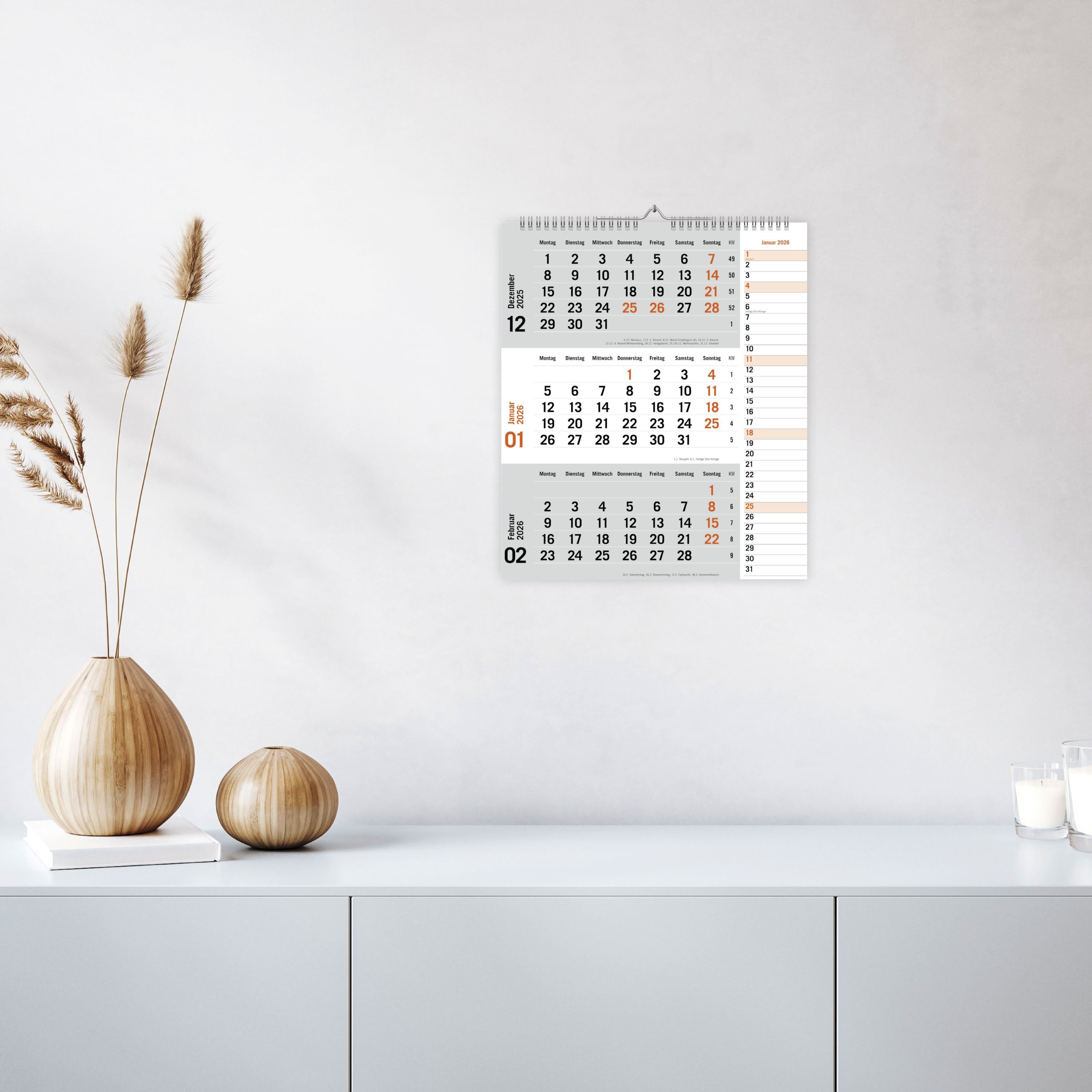 Neutral, praktisch, übersichtlich: Terminkalender in schlichtem Design mit Datumsschieber und Jahresübersicht - Alle Deadlines, Meetings und andere Termine im Blick mit diesem Büro-Wandkalender 2026 im Format 30 x 35 cm - Volle Konzentration auf das Wesentli...