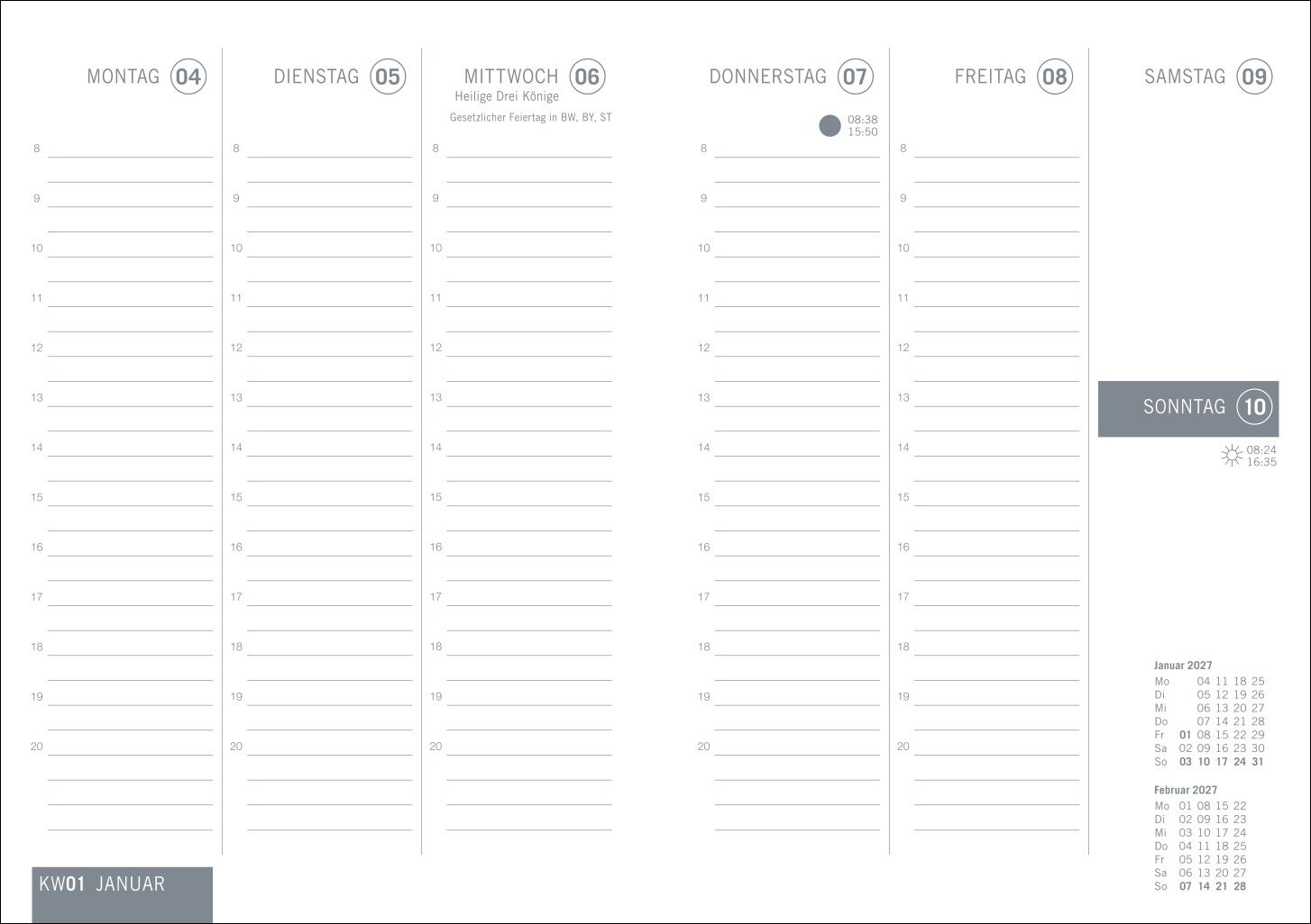 Edler Timer im unauffälligen Design: Taschenplaner 2027 im Format 11 x 15 cm mit einer Doppelseite Platz pro Woche und Monatsübersichten - Neutraler Organizer, der's in sich hat: Terminplaner mit viel Platz für Notizen und Reiseplanung sowie mit Adressteil u...