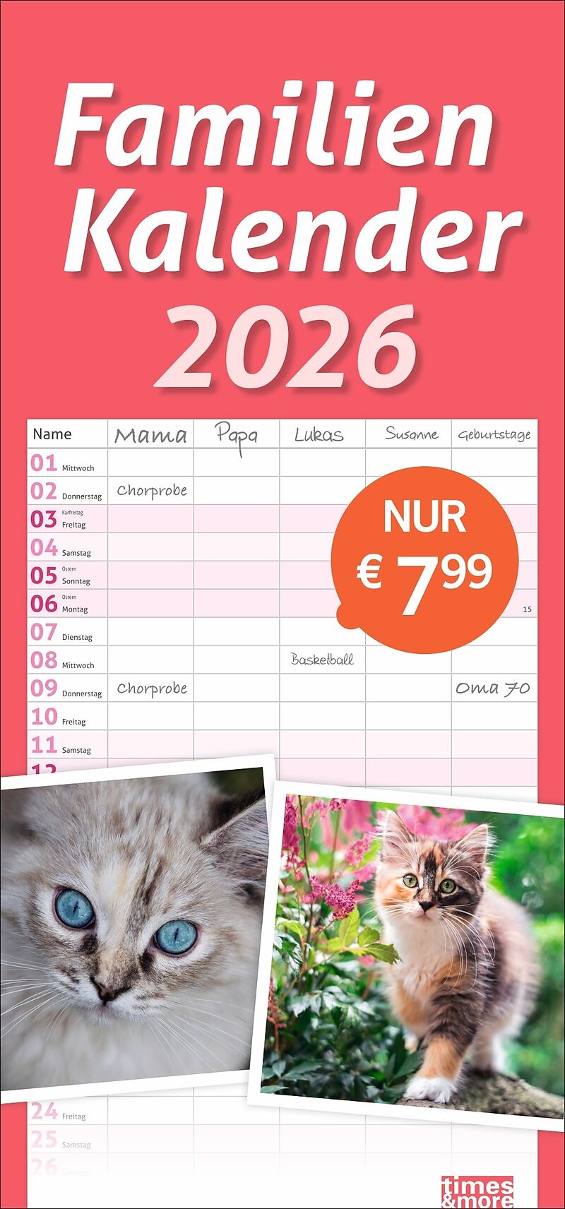 Mit den süßesten Stubentigern durch das Jahr: Der Katzen-Wandkalender 2026 erobert die Herzen von Jung und Alt! - Für alle, die richtig was vorhaben: Kalender für Familien mit 5 Spalten mit ausreichend Platz für Termine, Playdates und Co., im Format 21 x 45 ...