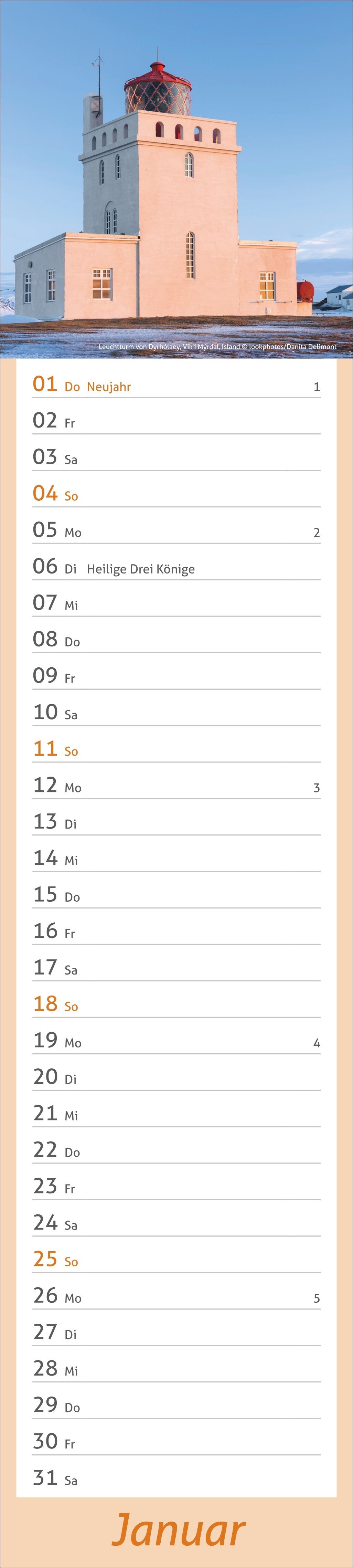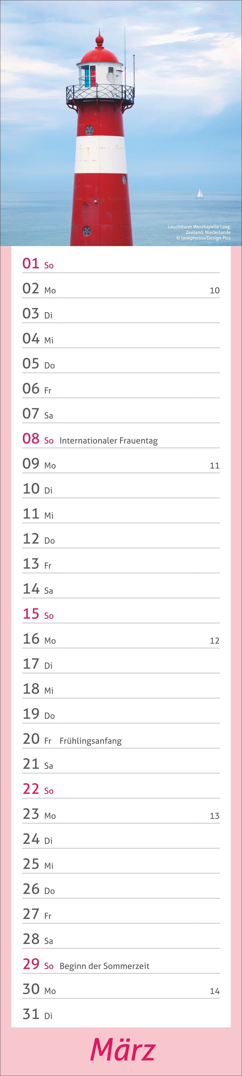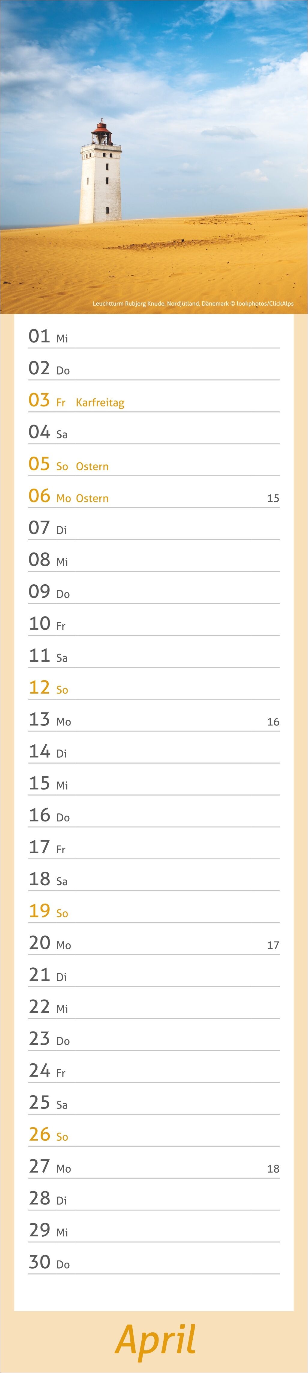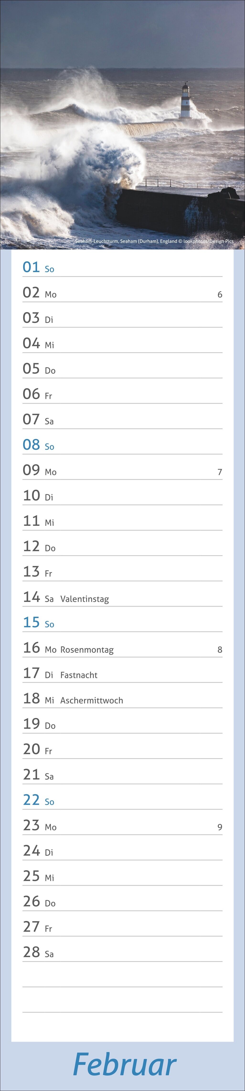 Praktischer Langplaner mit hübschen Leuchtturm-Motiven und übersichtlichem Kalendarium für Eintragungen.
