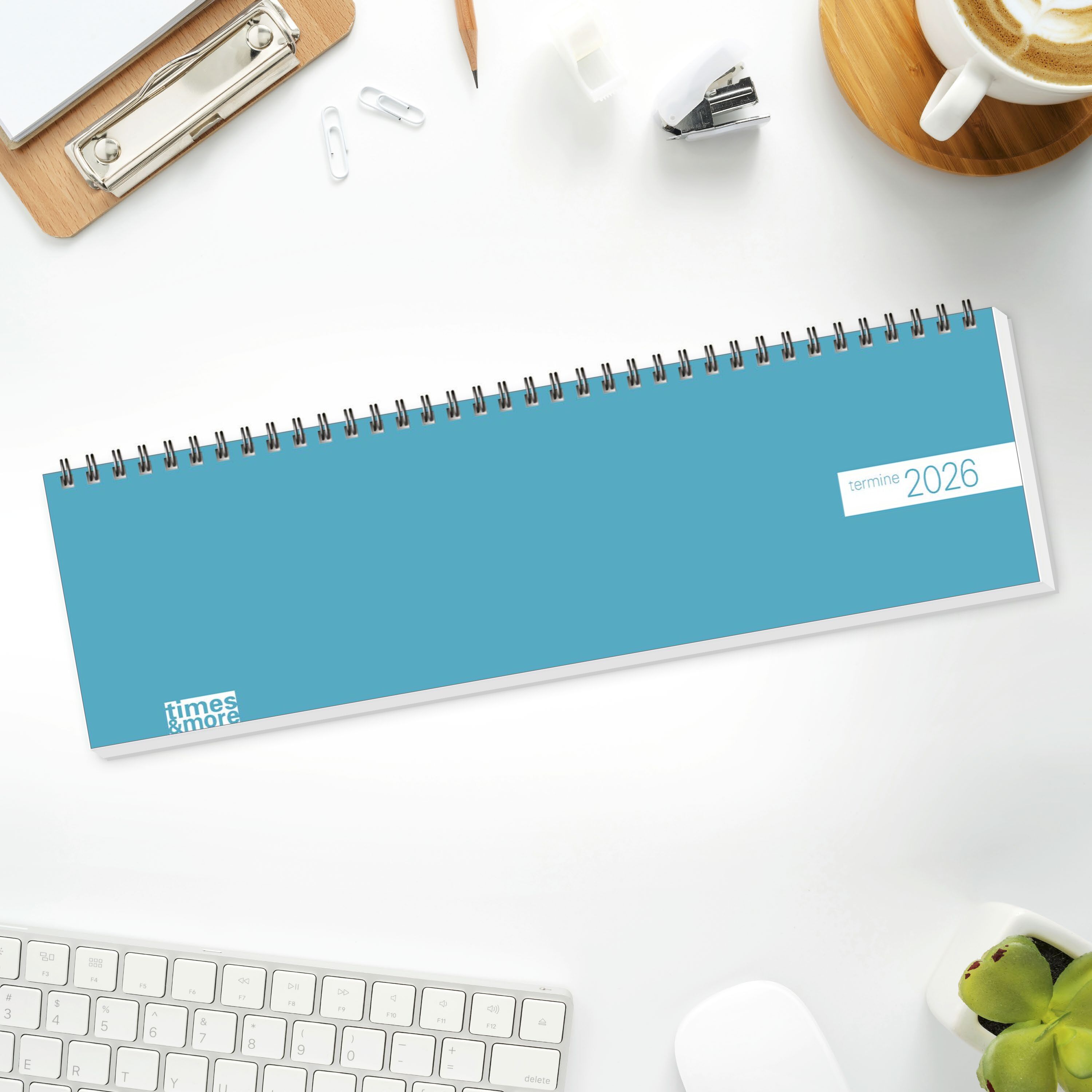 Organisationshilfe für den Alltag im frischen Design: Petrolfarbener Tischkalender für Büro und zuhause mit übersichtlichem Kalendarium für alle Termine - Volle Konzentration auf das Wesentliche: Kalender zum Umklappen im Querformat 32,5 x 9,3 cm mit 1 Seite...