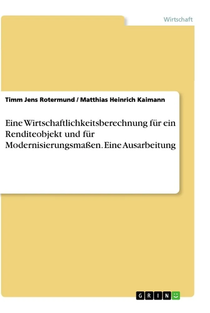 Fachbuch aus dem Jahr 2020 im Fachbereich BWL - Investition und Finanzierung, Note: 2,0, Hochschule Ostwestfalen-Lippe, Sprache: Deutsch, Abstract: Diese Arbeit stellt eine Wirtschaftlichkeitsberechnung für ein Renditeobjekt und für Sanierungsmaßnahmen dar.Imm...