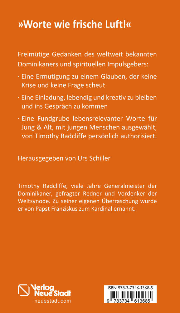 Hören, um zu lernen! Zum 80. Geburtstag von Timothy Radcliffe am 22.8.2025 Eine Injektion von Gelassenheit & Mut Erfrischend offene Worte des weltweit bekannten Dominikaners und spirituellen Impulsgebers: · Eine Ermutigung zu einem Glauben, der keine Krise...