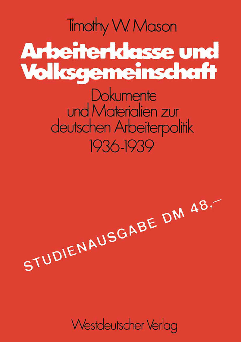 I. Die Erbschaft der Novemberrevolution für den Nationalsozialismus.- II. Nationalsozialismus und Arbeiterklasse bis Mai 1933.- III. Die Neuordnung der Klassenverhältnisse.- IV. Die Läge der Arbeiterklasse in Deutschland von 1933 bis 1936.- 1. Arbeitsbeschaffung.- 2. Löhne, Lebenshaltung und staatliche Sozialpolitik.- V. Sozialpolitik und soziale Ideologie von 1934 bis 1936.- VI. Sozialpolitik, Aufrüstung und Krieg, September 1936-Dezember 1939.- 1. Die gesellschaftlichen Folgen der Aufrüstung.- 2. Die Reaktionen des Herrschaftssystems auf die drohende Krise.- 3. Schlußbetrachtungen: Blitzkriegsstrategie und Innenpolitik.- Hitlers Außenpolitik.- Terror, Kapitalismus und Krieg.- Dokumententeil.- I Die beiden sozialpolitischen Richtungen im Nationalsozialismus 1936-1939.- ZwT. vor Dok. 1.- 1 Wortprotokoll der 5. Tagung der Reichsarbeitskammer am 24. November 1936 in Berlin (Auszüge).- II Arbeitskräftemangel und Vierjahresplan 1936.- ZwT. vor Dok. 2.- 2 Schreiben des Reichs- und Preußischen Arbeitsministers an den Chef der Reichskanzlei, Dr. Lammers, vom 28. August 1936.- ZwT. vor Dok. 3.- 3 Entwurf eines Zweiten Gesetzes zur Regelung des Arbeitseinsatzes mit Begründung und Durchführungsbestimmungen vom 6. Oktober 1936.- ZwT.vor Dok.4.- 4 Vermerk der Reichskanzlei über das Gesetz zur Regelung des Arbeitseinsatzes vom 30. Oktober 1936.- 5 Rede Görings im Berliner Sportpalast am 28. Oktober 1936 (Auszug).- ZwT. vor Dok. 6.- 6 Erste Anordnung zur Durchführung des Vierjahresplans über die Sicherstellüng des Facharbeiternachwuchses vom 7. November 1936.- 7 Zweite Anordnung zur Durchführung des Vierjahresplans über die Sicherstellung des Bedarfs an Metallarbeitern für Staats- und wirtschaftspolitisch bedeutsame Aufträge vom 7. November 1936.- 8 Dritte Anordnung zur Durchführung des Vierjahresplans über die Rückführung von Metallarbeitern und Baufacharbeitern in ihren Beruf vom 7. November 1936.- 9 Vierte Anordnung zur Durchführung des Vierjahresplans über die Sicherstellung der Arbeitskräfte und des Baustoffbedarfs für Staats- und wirtschaftspolitisch bedeutsame Bauvorhaben vom 7. November 1936.- 10 Fünfte Anordnung zur Durchführung des Vierjahresplans über die Beschäftigung älterer Angestellter vom 7. November 1936.- 11 Sechste Anordnung zur Durchführung des Vierjahresplans über das Verbot von Kennwortanzeigen für die Anwerbung oder Vermittlung von Metallarbeitern und Baufacharbeitern vom 7. November 1936.- 12 Siebente Anordnung zur Durchführung des Vierjahresplans über die Verhinderung rechtswidriger Lösung von Arbeitsverhältnissen vom 22. Dezember 1936.- 13 Erlaß des Reichs- und Preußischen Arbeitsministers an die Treuhänder der Arbeit vom 30. Dezember 1936.- III Arbeitsmarkt und Lohnstand um die Jahreswende 1936/37.- 14 Schreiben des Reichs- und Preußischen Arbeitsministers an den Chef der Reichskanzlei vom 2. Dezember 1936.- ZwT. vor Dok. 15.- 15 Bericht des Statistischen Reichsamts über die Entwicklung der tatsächlichen Arbeitsverdienste im Jahre 1936.- 16 Schreiben des Reichs- und Preußischen Arbeitsministers an den Chef der Reichskanzlei vom 25. Januar 1937.- IV Die Metallarbeiteranordnung vom 11. Februar 1937 und ihre Auswirkungen.- ZwT. vor Dok. 17.- 17 Anordnung über den Arbeitseinsatz von Metallarbeitern vom 11. Februar 1937, mit Durchführungserlaß.- 18 Erlaß des Präsidenten der Reichsanstalt an die Landesarbeitsämter und Arbeitsämter vom 27. April 1937.- 19 Erlaß des Präsidenten der Reichsanstalt an den Präsidenten des Landesarbeitsamts Brandenburg vom 8. November.- 20 Bericht des Präsidenten des Landesarbeitsamts Brandenburg an den Präsidenten der Reichsanstalt vom 8. Januar 1938.- 21 Bericht des Arbeitsamts Berlin an den Präsidenten des Landesarbeitsamts Brandenburg vom 20. Dezember 1937.- 22 Schreiben des Reichs- und Preußischen Arbeitsministers an den Reichskriegsminister und den Reichsminister der Luftfahrt vom 17. Februar 1937.- 23 Schreiben des Reichs- und Preußischen Wirtschaftsministers an die Geschäftsgruppe Arbeitseinsatz beim Beauftragten für den Vierjahresplan vom 12. Mai 1938.- 24 Bericht des Präsidenten der Reichsanstalt an den Reichsarbeitsminister vom 6. August.- 25 Schreiben der Firma Rheinmetall-Borsig (Zentrale Verkauf Waffen, Berlin) an den Chef des Wehrwirtschaftsstabes vom 21. Juli 1938.- 26 Bericht der Wehrwirtschafts-Inspektion VI (Münster) an den Wehrwirtschaftsstab vom 2. September 1938.- ZwT. nach Dok. 26.- V Die soziale und wirtschaftliche Entwicklung im Frühjahr 1937.- ZwT. vor Dok. 27.- 27 Auszug aus den Monatsberichten der Treuhänder der Arbeit für den Monat Februar 1937.- ZwT. vor Dok. 28.- 28 Vermerk aus dem Geheimen Staatspolizeiamt II.A.2. vom 13. Februar 1937.- 29 Monatsbericht des Sicherheitsdienstes II 1 2 1 über Linksbewegung im Februar 1937 (Auszug).- 30 Auszug aus den Monatsberichten der Reichstreuhänder der Arbeit für den Monat März 1937.- 31 Bericht des Statistischen Reichsamts über die Entwicklung der tatsächlichen Arbeitsverdienste im 1. Vierteljahr 1937 (Auszug).- VI Die soziale und wirtschaftliche Entwicklung April-Mai 1937.- 32 Bericht der Staatspolizeistelle Darmstadt an das Geheime Staatspolizeiamt vom 21. April 1937.- 33 Auszug aus den Monatsberichten der Reichstreuhänder der Arbeit für den Monat April 1937.- 34 Staatspolizeiliche Erlasse und Vermerke betreffs der Überwachung entlassener Schutzhäftlinge von August 1934 bis September 1937.- 35 Schreiben des Reichs- und Preußischen Arbeitsministers an den Chef der Reichskanzlei vom 23. April 1937.- 36 Auszug aus den Monatsberichten der Reichstreuhänder der Arbeit für den Monat Mai 1937.- 37 Bericht des Treuhänders der Arbeit für das Wirtschaftsgebiet Mitteldeutschland an den Reichs- und Preußischen Arbeitsminister vom 20. Februar 1937.- 38 Anordnung über den Arbeitseinsatz von Arbeitern der chemischen Industrie und des Baugewerbes in den Bezirken der Arbeitsämter Bitterfeld, Halle und Wittenberg v