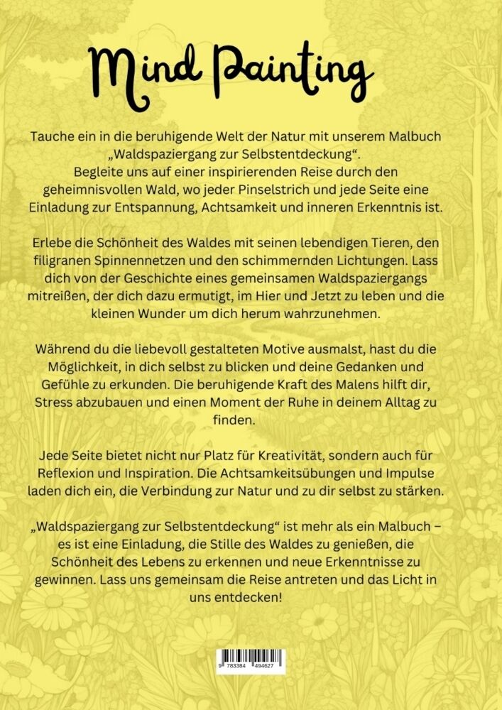 "Waldspaziergang" ist mehr als ein Malbuch - es ist eine Einladung, die Stille des Waldes zu genießen, die Schönheit des Lebens zu erkennen und neue Erkenntnisse zu gewinnen. Jede Seite bietet nicht nur Platz für Kreativität, sondern auch für Reflexion und Ins...