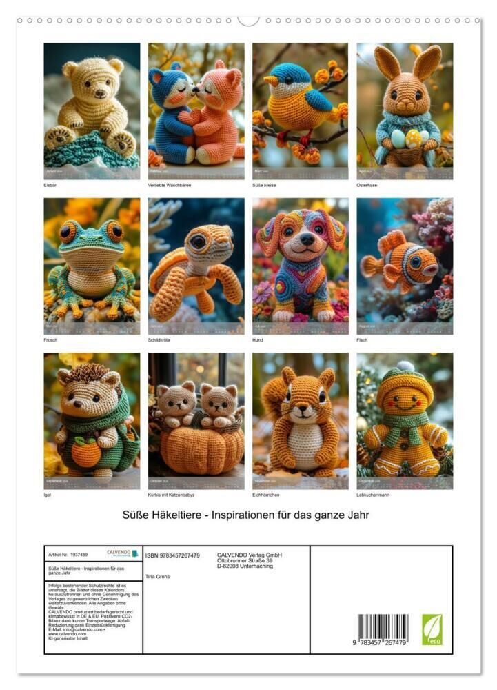 Tauchen Sie ein in die zauberhafte Welt der Häkelkunst! Dieser mit modernsten KI Tools erstellte Wandkalender begleitet Sie mit handverlesenen Motiven von niedlicher Häkeltiere durch die Jahreszeiten. Ob ein kuscheliger Eisbär im Winter, ein fröhlicher Frosch ...