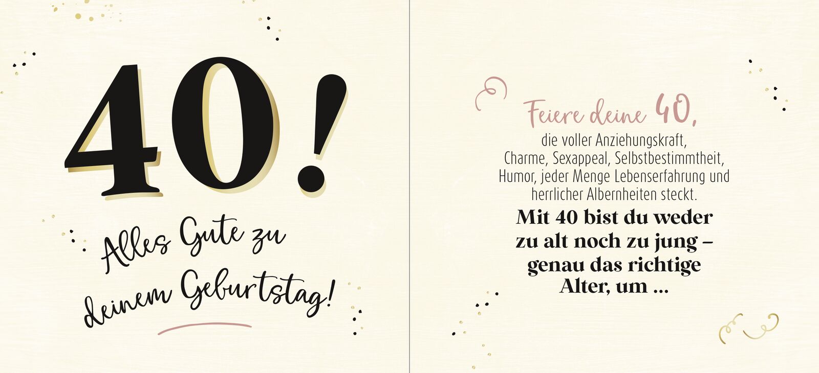 Charmantes Geschenkbuch zum 40. Geburtstag Mini-Buch mit 40 Inspirationen und Ideen für das neue Lebensjahr Originelles Mitbringsel oder Ersatz für eine Glückwunsch-Karte zum runden Geburtstag für Frauen und Männer, egal ob für dendie Freundin, die Kollegin o...