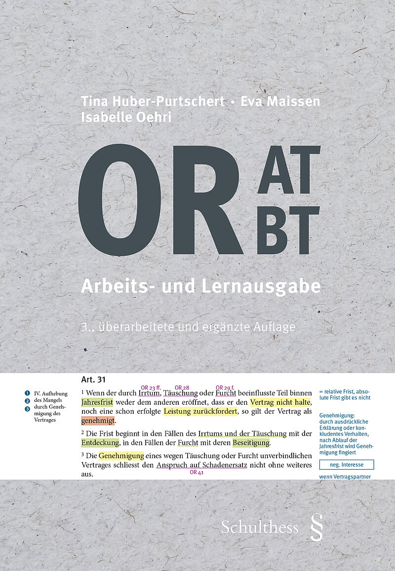 Das Wichtigste zu jedem Gesetzesartikel auf einen Blick - die Arbeits- und Lernausgabe OR AT BT richtet sich sowohl an Studierende, welche die Anwendung des Obligationenrechts erlernen, als auch an Praktikerinnen und Praktiker, die sich die Zusammenhänge rasch...