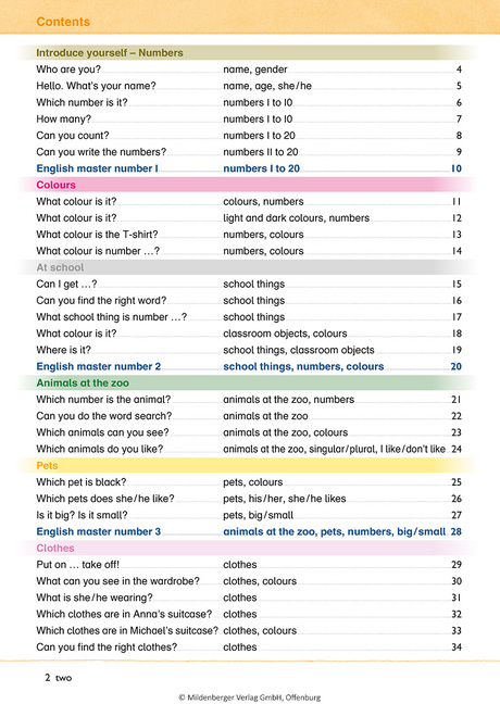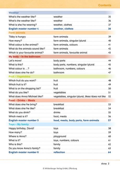 Spielerisch und motivierend führt Das Übungsheft Englisch 3 den Wortschatz und Satzphrasen zu folgenden Themen der Grundschule ein: