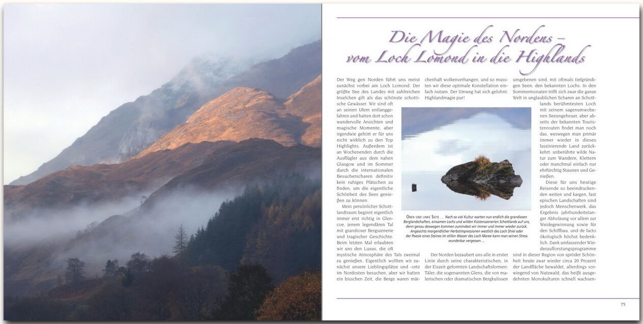 Land der Sehnsucht und der Träume zwar denken die meisten bei Schottland spontan immer noch an Dudelsäcke, Männer in karierten Röcken, Whisky und Loch Ness, jenen geheimnisvollen See, in dessen trübem Wasser angeblich in dunkler Tiefe ein saurierartiges Fabelw...