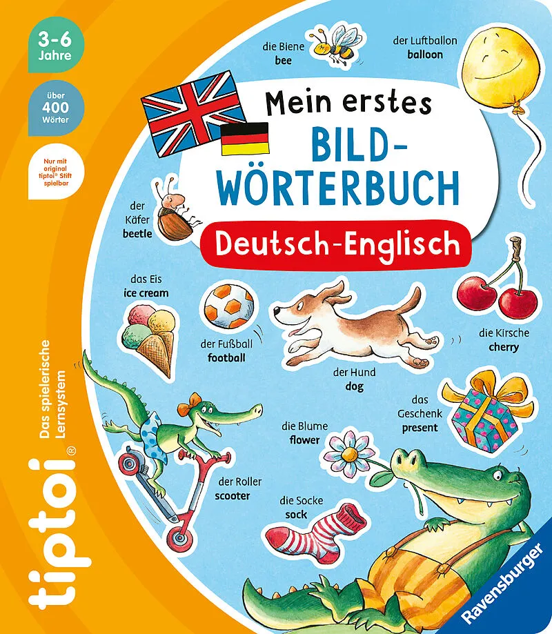 tiptoi® Mein erstes Bild-Wörterbuch Deutsch-Englisch My first English words Mit den lustigen Krokodilen Allie Gator und Kroko Peter lernen schon die Kleinsten spielend erste englische Wörter. Auf 11 Doppelseiten sind bekannte Tiere und Gegenstände abgebildet v...28 Kunden haben diesen Artikel kürzlich gekauft.
