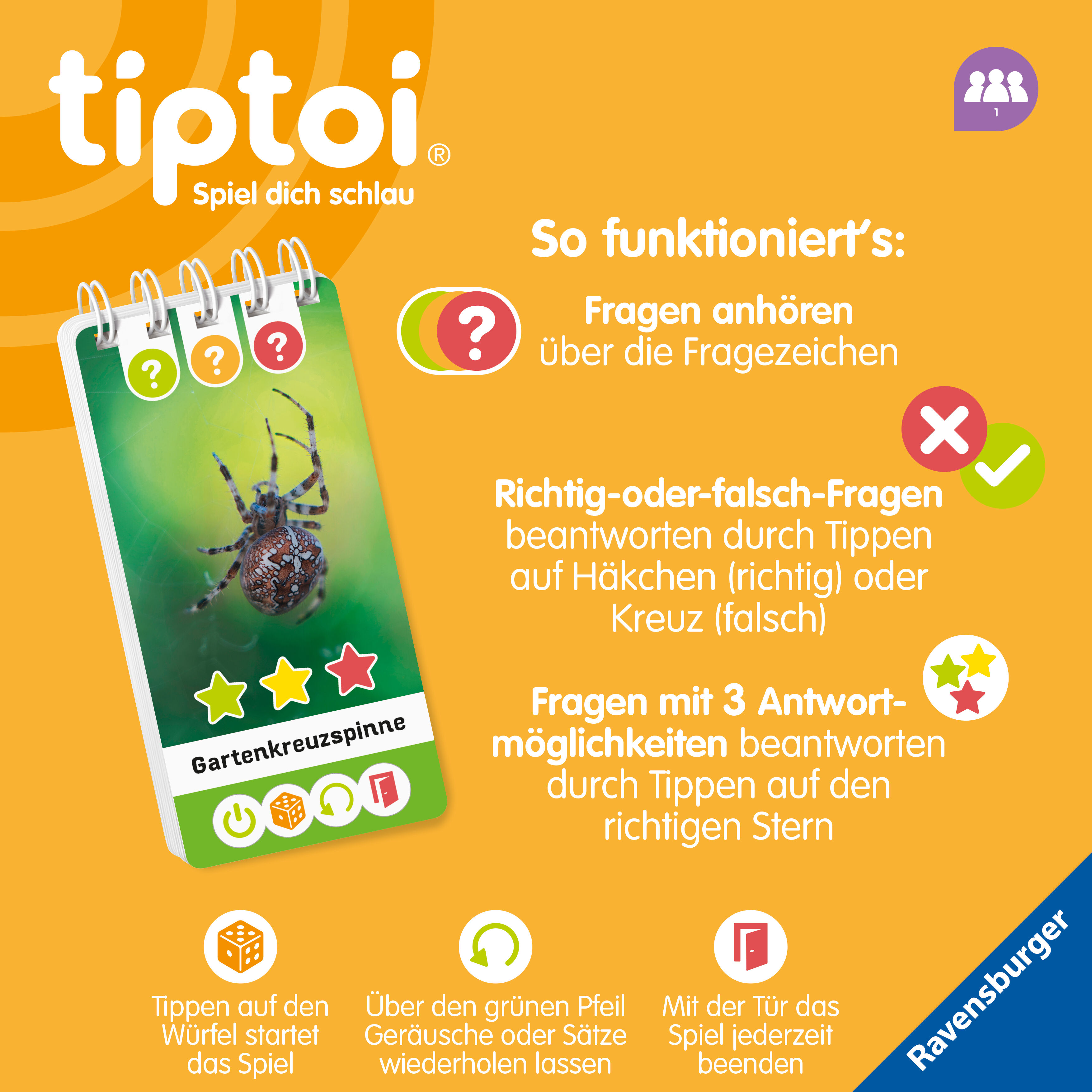 Hat ein Tausendfüßer tausend Füße? Warum hat die Gottesanbeterin auf ihren Fangarmen Flecken, die wie Augen aussehen? Was frisst die Rollassel? Wie alt konnen Kreuzspinnen werden? Dieses tiptoi Quiz beantwortet spannende Kinderfragen auf Augenhöhe und vermitte...