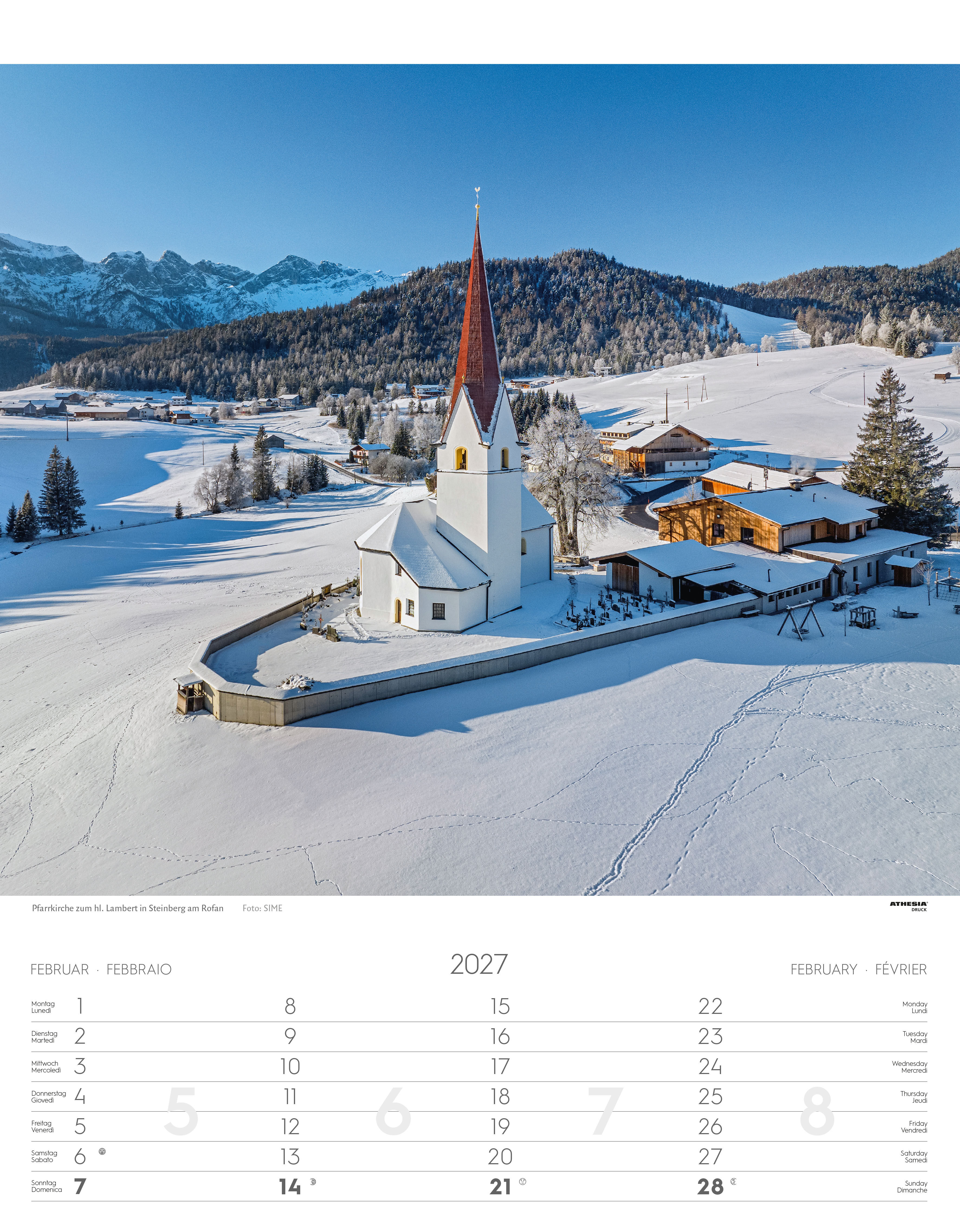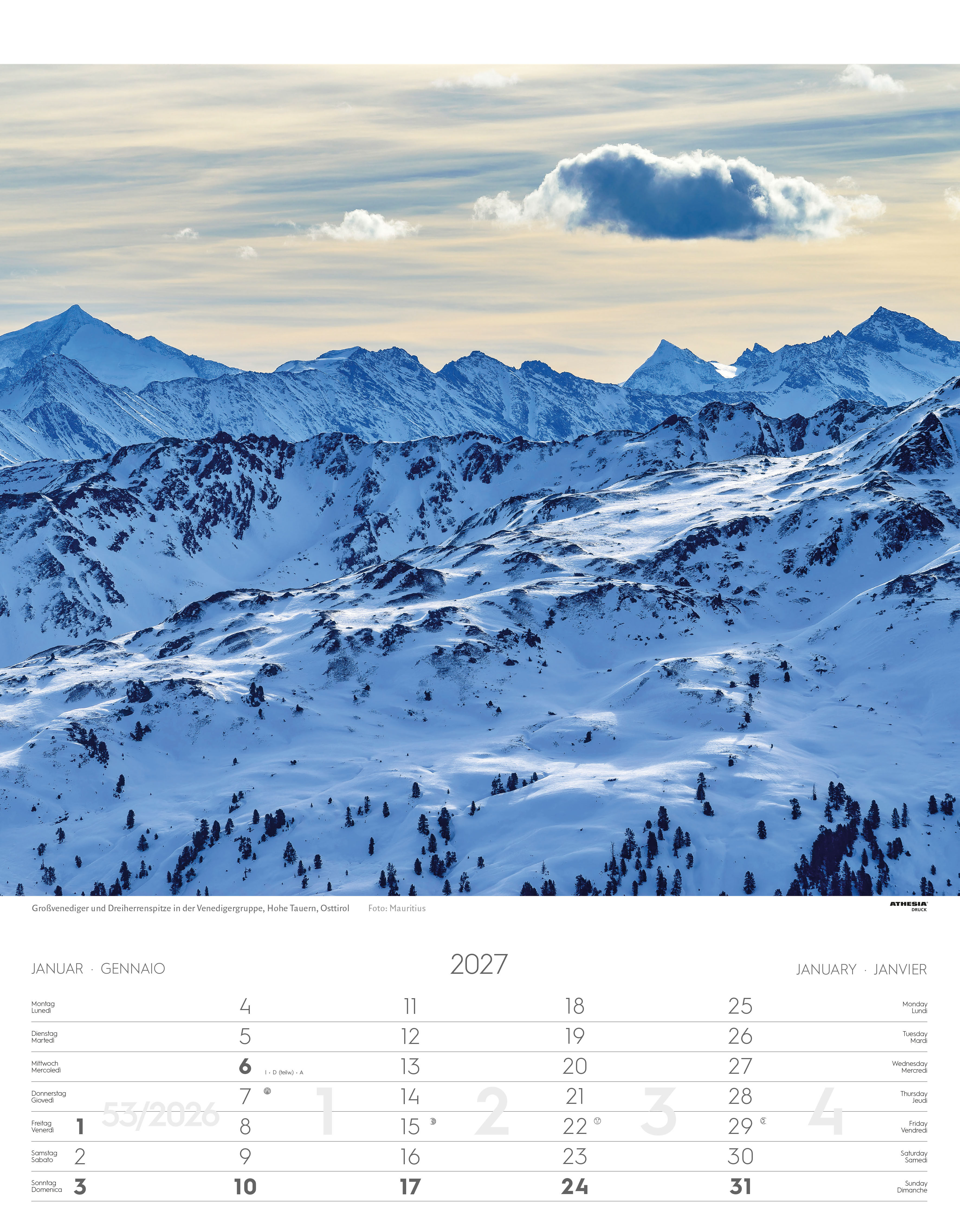 Tirol, wie Sie es noch nie gesehen haben. - Titelbild - 12 Monatsblätter - Übersichtsblatt - Spiralbindung - einzeln eingeschweißt - viersprachiges Kalendarium - copertina - 12 fogli mensili - foglio riassuntivo - rilegatura a spirale - cellofanatura singola -...