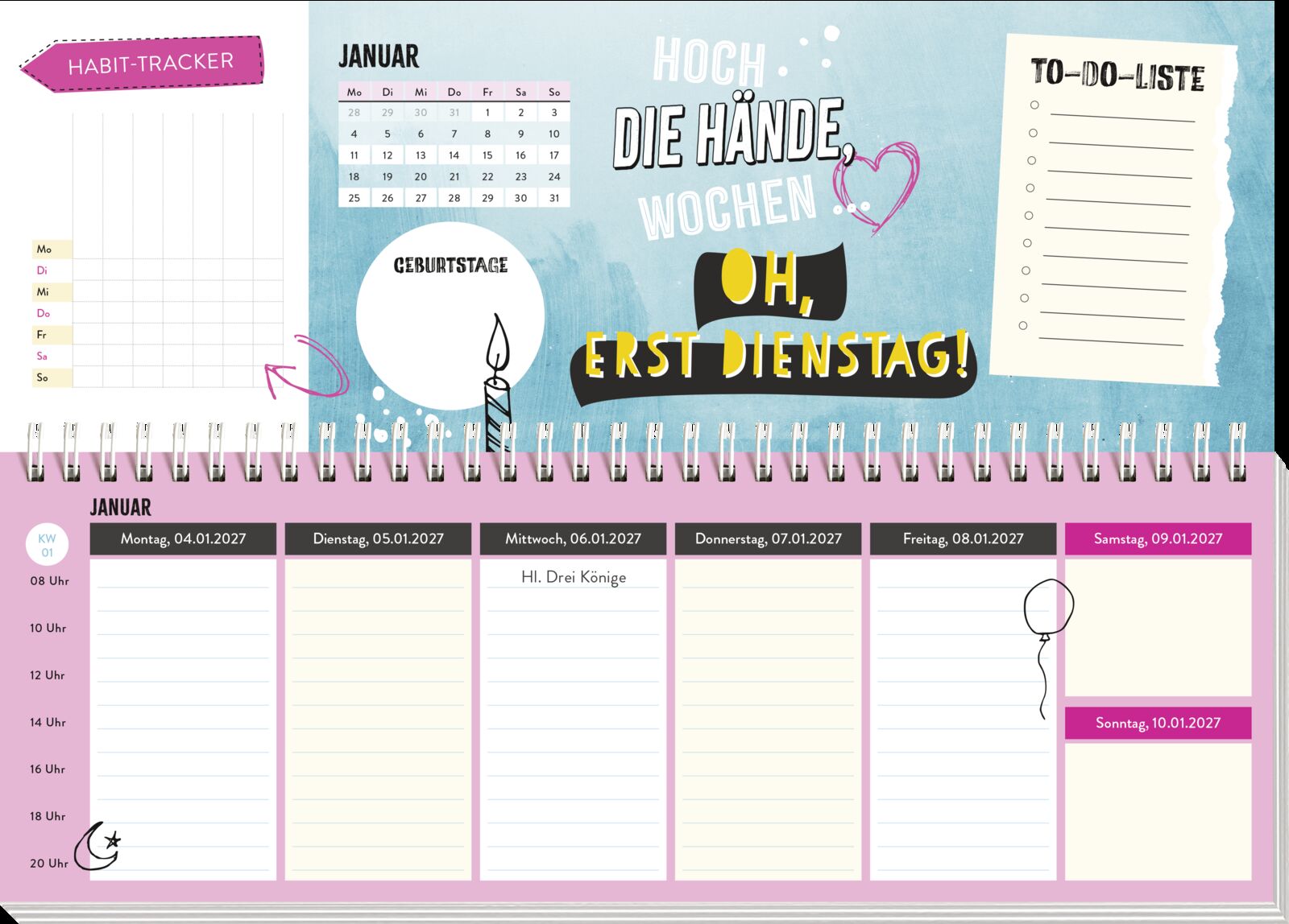 Lustiger Tischkalender 2027 im Querformat "Los, der Tag versaut sich nicht von selbst!" Dieser Kalender bringt Sie mit fiesen Sprüchen und einer großen Portion Ironie durch das Jahr nicht immer motivierend, dafür aber mit Lach- und Anti-Stress Garantie! Für d...