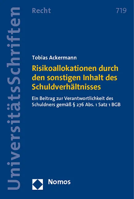 Das Werk untersucht erstmals grundlegend und umfassend die Bedeutung des sonstigen Inhalts des Schuldverhltnisses in 276 Abs. 1 Satz 1 BGB. Dieser hat Einfluss auf den Haftungsmastab des Schuldners und bewirkt so eine Verteilung des Schadensrisikos. Aufbauend ...