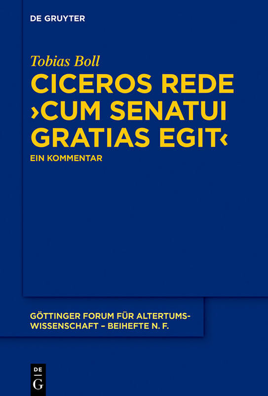 The day after he returned from exile, Cicero gave a speech of thanks to the senate. This is the first modern commentary of that oration, cum senatui gratias egit . Considering the matching oration Cicero gave to the people as well, this book is an important c...
