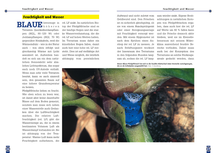 Der Blaue Pfeilgiftfrosch (auch "Blauer Baumsteiger" oder "Azurblauer Baumsteiger" genannt) zählt mit Sicherheit zu den spektakulärsten Terrarientieren überhaupt. Aber nicht nur seine leuchtende Färbung und die stattliche Größe, sondern auch sein interessantes...