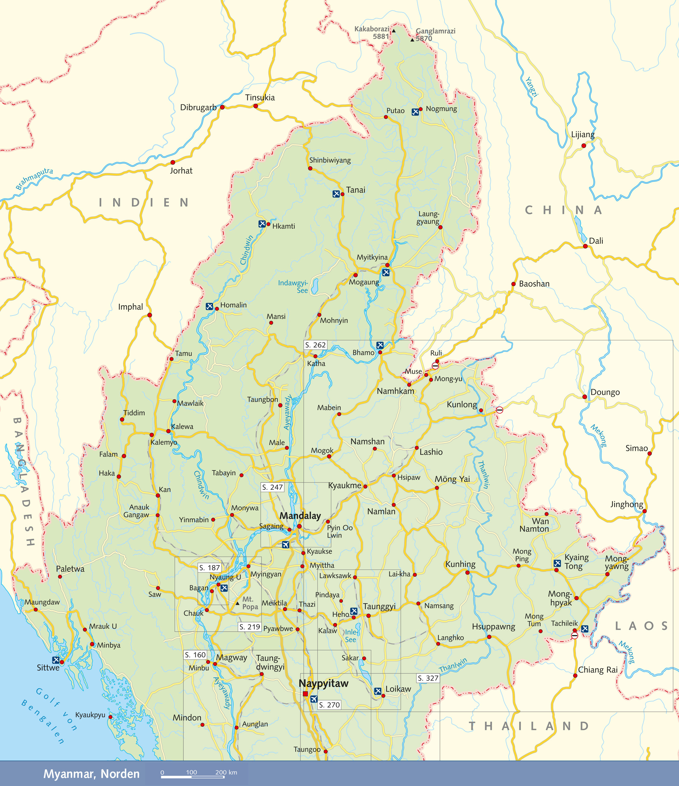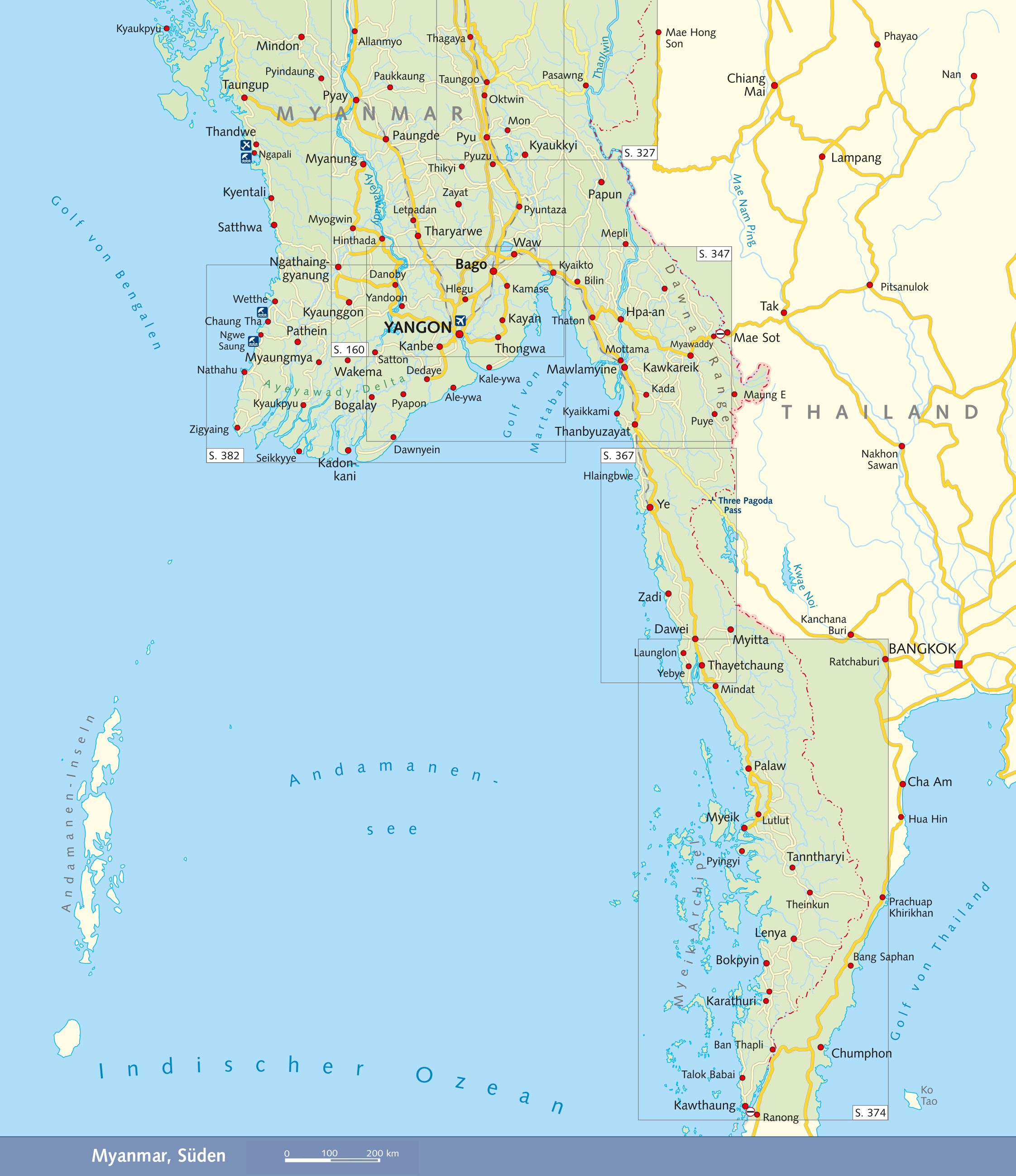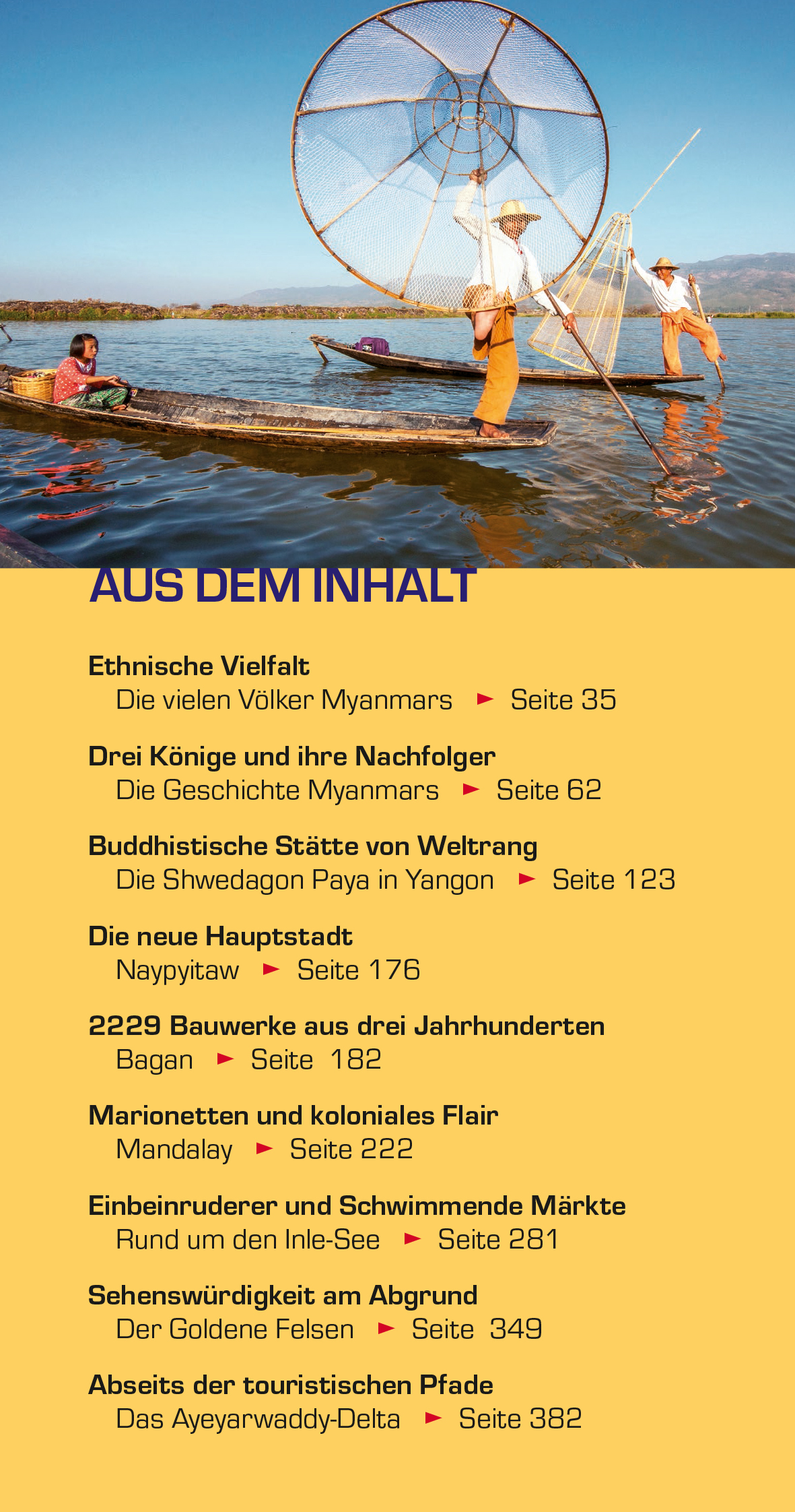 INHALTSVERZEICHNIS Grußwort 12 Vorwort 13 Die schönsten Reiseziele 14 Hinweise zur Benutzung Hinweise zur Benutzung 16 Entfernungstabelle 17 Das Wichtigste in Kürze 18 LAND UND LEUTE 21 Zahlen und Fakten 22 Geographie 23 Die großen Flüsse 24 Natur und Umwelt 28 Flora und Fauna 30 Das Land und seine Bezeichnungen 34 Die vielen Völker Myanmars 35 Die Tibeto-Birmanen 36 Die Tai 38 Die Kayin (Karen) 38 Die Mon-Khmer 39 Die Inder 39 Die Chinesen 39 Der Status der Frau in Myanmar 40 Feiertage 43 Geisterglaube und Buddhismus 46 Die Verwebung von Geisterglaube und Buddhismus 46 Der Geisterglaube im Alltag 48 Der Buddhismus 51 Mönch und Gesellschaft 55 Der Buddhismus im täglichen Leben 58 Die Geschichte Myanmars 62 Überblick über die Geschichte Myanmars 64 Frühe Besiedlung 67 Bagan - das erste Großreich (1044-1287) 69 Innwa und Bago 71 Die Taungoo-Ära (1531-1752) 73 Die Konbaung-Dynastie (1752-1885) 75 Kolonialzeit (1885-1948) 77 Zweiter Weltkrieg 78 Unabhängigkeit (1948-1962) 79 Die sozialistische Phase (1962-1988) 81 Sozialismus und außenpolitische Isolation 83 Die Entstehung des SLORC/SPDC (1988-2011) 85 Verspielte Chance: Die Wahlen von 1990 87 Myanmar und der Verband südostasiatischer Staaten (ASEAN) 88 Der Fahrplan zur Demokratie 89 Die Wahlen 2010 90 Die Wahlen 2015 94 Myanmar heute 95 Kunst und Kultur 100 Literatur 100 Musik 104 Kleidung und Textilien 106 Thanakha und das Schönheitsideal 111 Essen und Trinken 112 YANGON 117 Annäherung an Yangon 119 Orientierung 119 Stadtgeschichte 120 Sehenswürdigkeiten 123 Shwedagon Paya 123 Die Umgebung der Shwedagon 129 Rund um den Inya-See 134 Sehenswürdigkeiten in der Downtown 138 Eisenbahnfahrt mit der Circle Line 142 Wie Yangon entstand - ein Spaziergang durch die Stadt 143 Yangon-Informationen 148 DIE ZENTRALEBENE 159 Bago 161 Soldatenfriedhof Htaukkyant 161 Geschichte der Stadt 162 Sehenswürdigkeiten 163 Taungoo 168 Elefantencamps 168 Ausflug von Taungoo nach Thandaung Gyi 170 Unterwegs östlich des Sittaung 172 Pyay 173 Naypyitaw 176 Sehenswürdigkeiten 178 BAGAN UND UMGEBUNG 183 2229 Bauwerke aus drei Jahrhunderten 184 Geschichte 184 Orientierung 186 Architektur 188 Konzept und Grenzen des Stadtstaates Bagan 190 Besichtigung der Tempel 191 Tempel in Bagan-Nyaung Oo 192 Tempel in Alt-Bagan 196 Tempel zwischen Alt- und Neu-Bagan 203 Neu-Bagan 209 Tempel nordöstlich von Neu-Bagan 209 Bagan-Informationen 212 Die Umgebung von Bagan 218 Mount Popa - der Geisterberg 218 Sale 220 MANDALAY UND UMGEBUNG 223 Mandalay 224 Stadtgeschichte 225 Überblick 226 Sehenswürdigkeiten 229 Mandalay-Informationen 239 Ausflüge von Mandalay 246 Organisation der Ausflüge 246 Mingun 247 Innwa 253 Sagaing 254 Amarapura 257 DER SHAN-STAAT 261 Geographie und Geschichte 262 Orientierung 263 Geschichte 263 Eine andere Geschichte des Shan-Staats 265 Der südliche Shan-Staat 269 Reisen im südlichen Shan-Staat 269 Kalaw 271 Pindaya 273 Die alte Fürstenstadt Nyaungshwe 278 Bahnfahrt Shwenyaung-Kalaw 280 Der Inle-See 281 Ayethayar-Weingut 287 Taunggyi 287 Der nördliche Shan-Staat 293 Reisen im nördlichen Shan-Staat 293 Pyin Oo Lwin 294 Das Goteik-Viadukt 303 Hsipaw 303 Lashio 308 Der östliche Shan-Staat 315 Kyaingtong (Kengtung) 316 Tachileik 319 Mong La in der Special Region 4 320 DER KAYAH-STAAT 325 Geographie und Geschichte 326 Bevölkerung 326 Geschichte 327 Australien und die Minen bei Mawchi 328 Loikaw 330 Sehenswürdigkeiten und Ausflüge 330 Östlich von Loikaw 332 Nördlich von Loikaw 333 Südlich von Loikaw 334 Der südliche Kayah-Staat 338 Hpasawng (Hpasaung, Parsaung) 338 Bawlakhe 338 Saya (Sar Yar) 339 Mawchi 339 Nattaung 339 DER SÜDEN 345 Die Regionen im Süden 346 Der Mon-Staat 348 Geographie u…