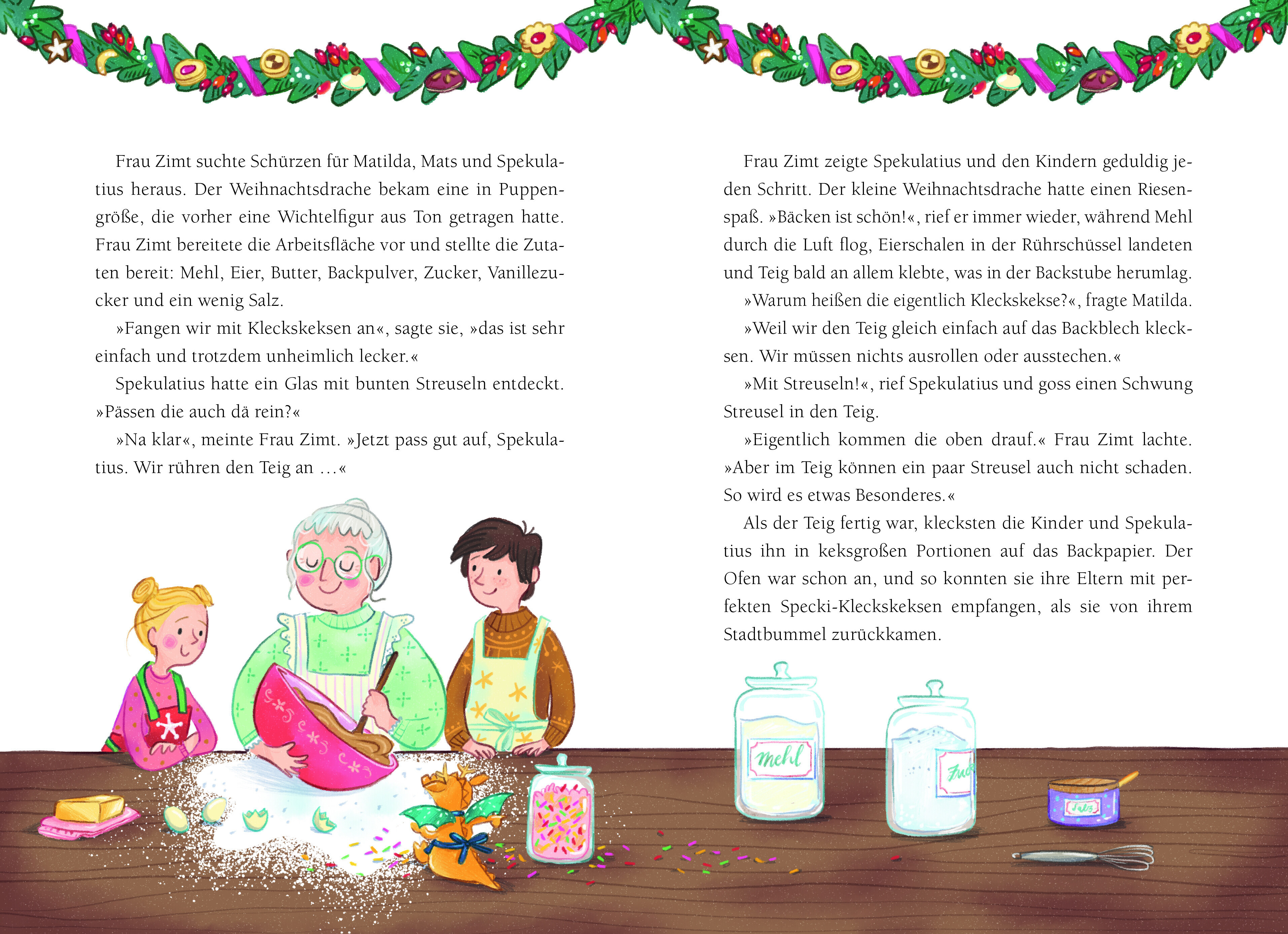 Plätzchen backen und Weihnachtsabenteuer mit Spekulatius In der Vorweihnachtszeit entdecken Mats, Matilda und Spekulatius die kleine zauberhafte Bäckerei "Zimt und Zucker". Hier backt Frau Zimt die köstlichsten Weihnachtsplätzchen. Aber bald soll das alles ei...