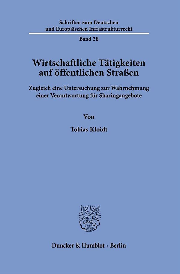 Die Arbeit entwirft Grundzüge einer Verantwortung für Sharingangebote und zeigt, wie der Staat eine solche Verantwortung durch die Bereitstellung von Straßenflächen wahrnimmt. Aus diesem Anlass werden wirtschaftliche Tätigkeiten auf den Straßen mit ihren Grund...