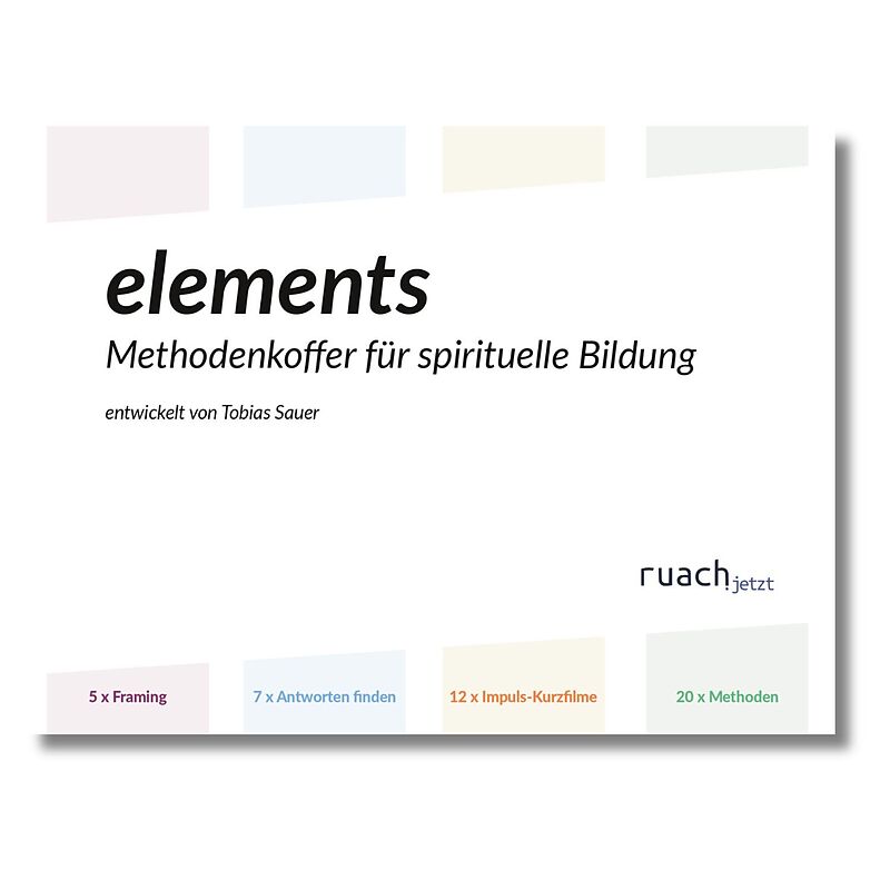 elements ist ein individuell erweiterbarer Methodenkoffer für die spirituelle Bildung. Dieser bietet Bausteine, um mit Teilnehmenden offen und ehrlich an ihrer Spiritualität zu arbeiten. Spiritualität ist der Blick auf die Welt mit der Frage, ob es Mehr gibt.