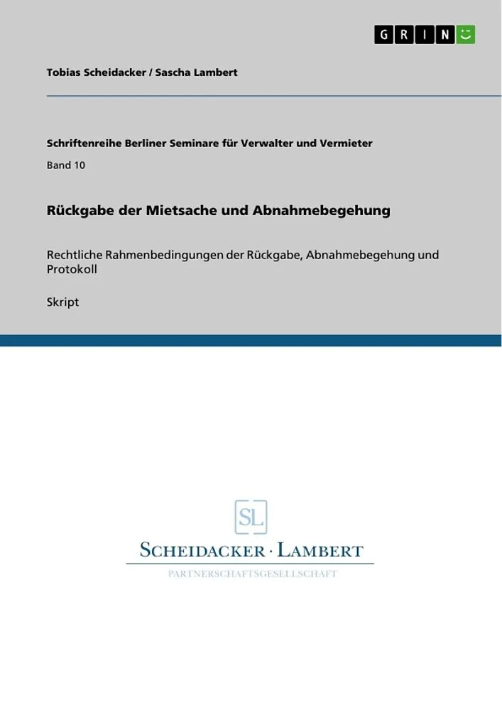 Skript aus dem Jahr 2011 im Fachbereich Jura - Zivilrecht / BGB AT / Schuldrecht / Sachenrecht, , Veranstaltung: Berliner Seminare für Verwalter und Vermieter, Sprache: Deutsch, Abstract: Aus Verwalterperspektive werden sämtliche Aspekte des Rückerhalts von Mi...
